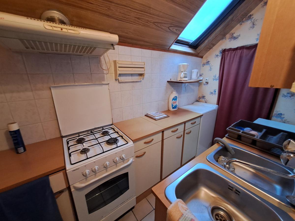 -au rez-de-chaussée : une pièce de vie, une chambre, cuisine, salle de bains avec WC et cellier,