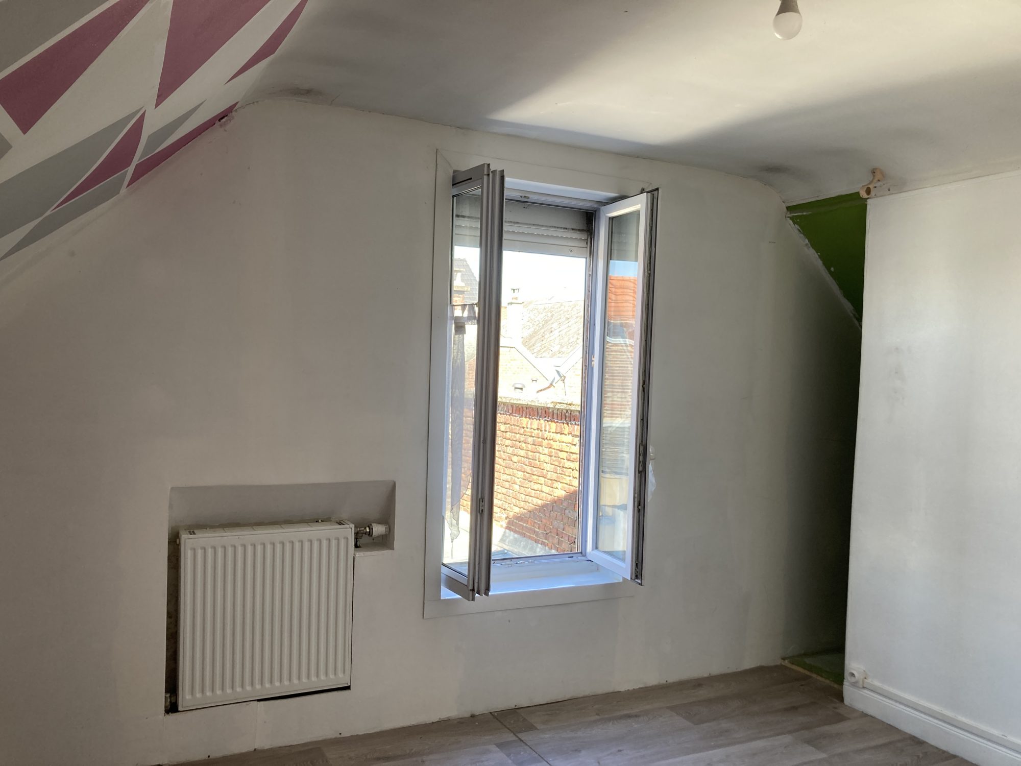 A l'étage : palier, deux chambres.
