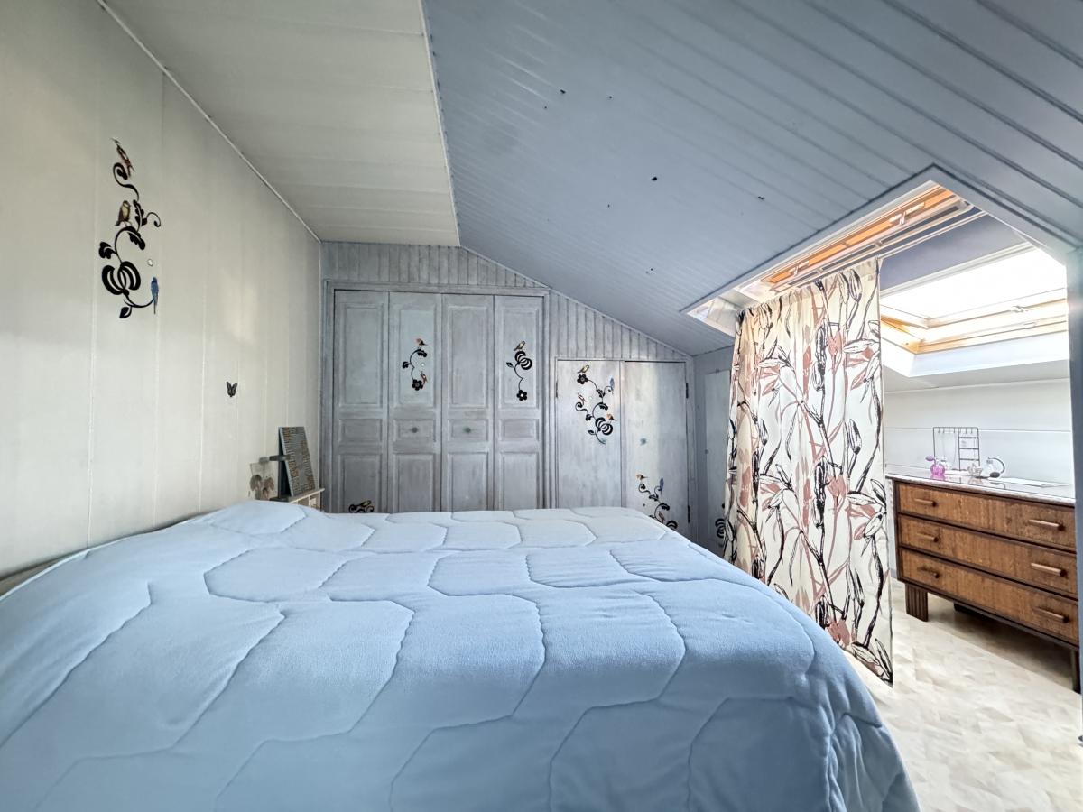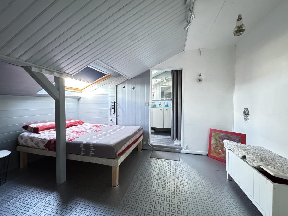 A l'étage, l'espace nuit comprend deux chambres, dont l'une avec salle d'eau et wc, fonctionnelle et bien agencée.