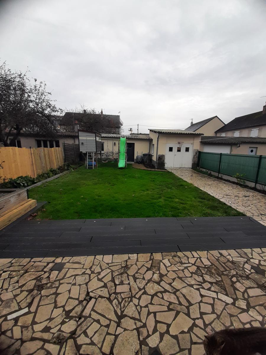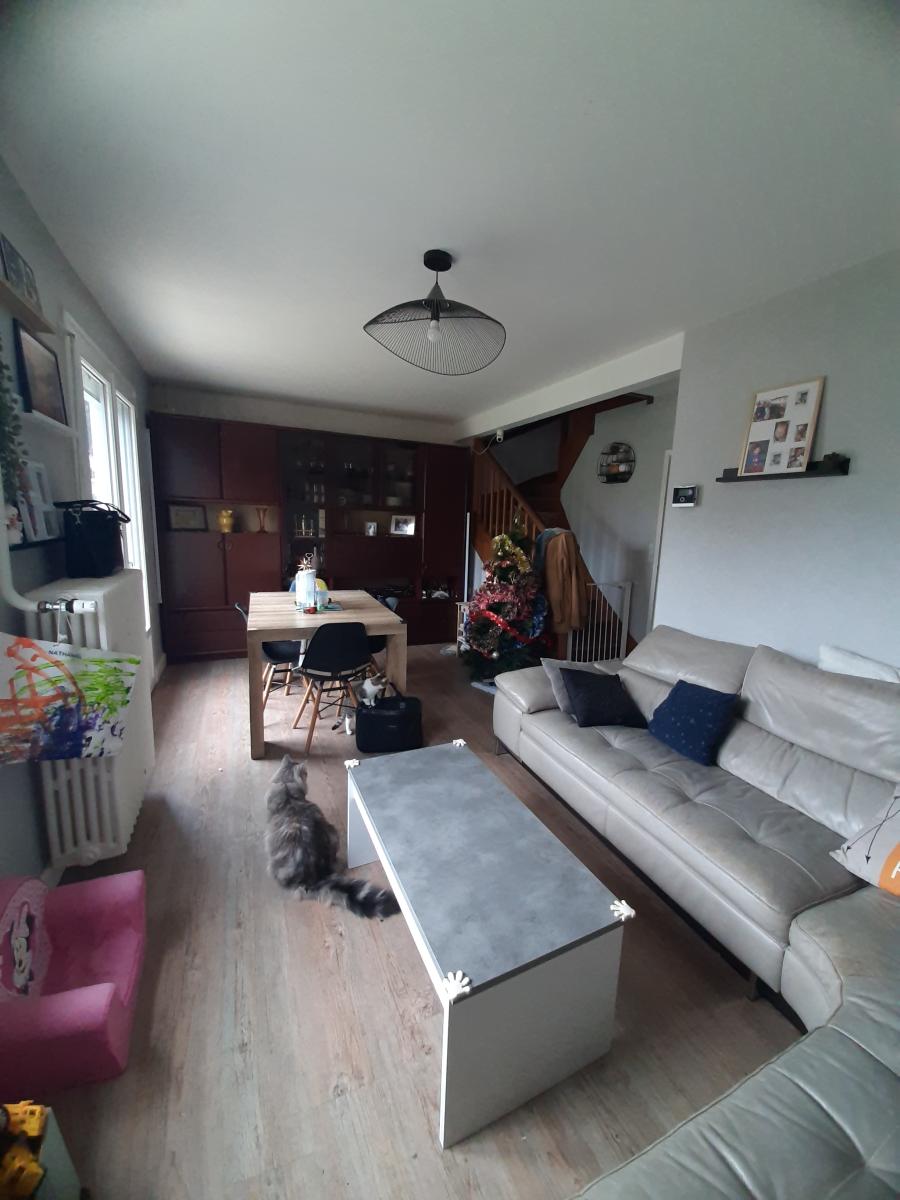 - au rez-de-chaussée : une entrée, une cuisine équipée (plaque de cuisson à gaz, hotte, chaudière), un séjour, un dégagement, WC, garage.