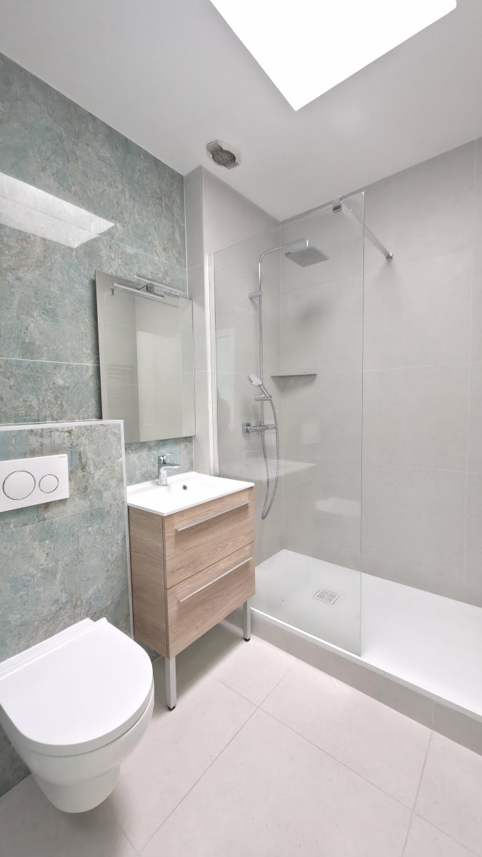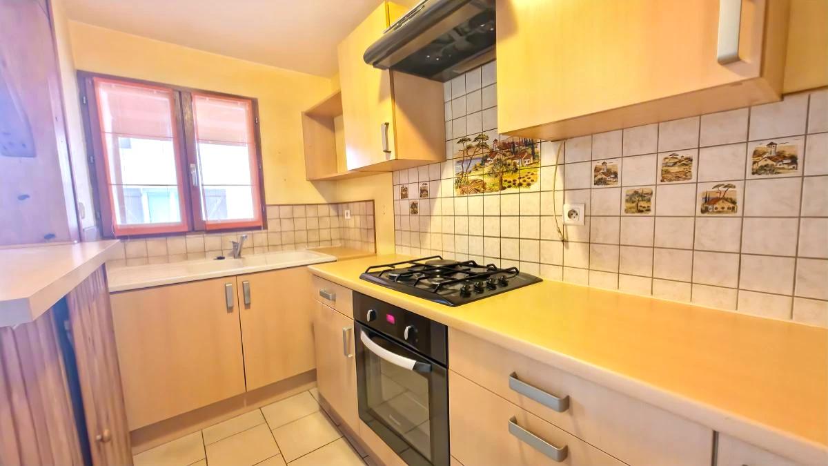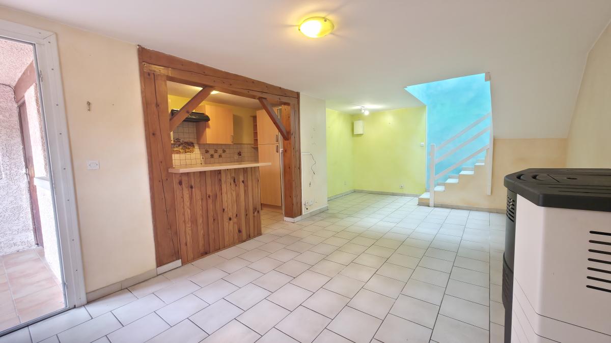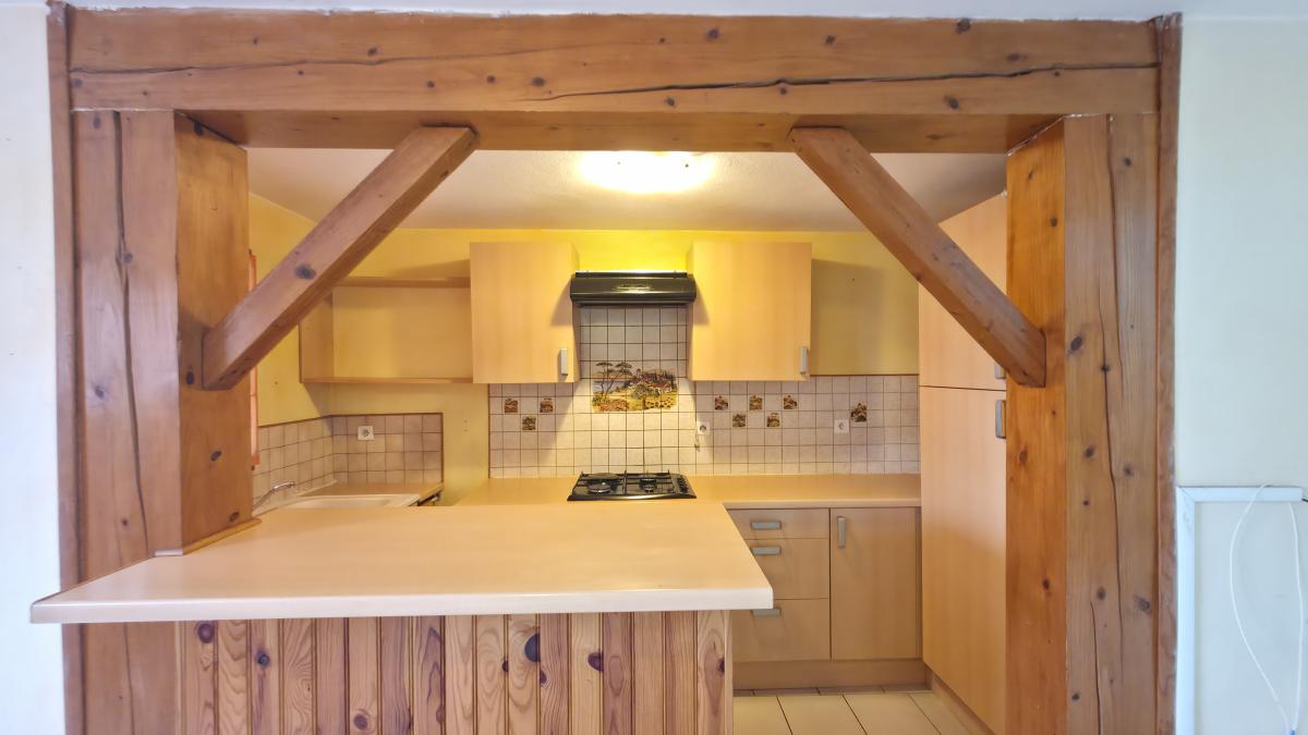 Elle se compose d’une cuisine équipée ouverte sur un salon/séjour de deux chambres, d’un bureau (7.45m²), d’une salle d’eau/wc. Une buanderie indépendante vient compléter le bien.