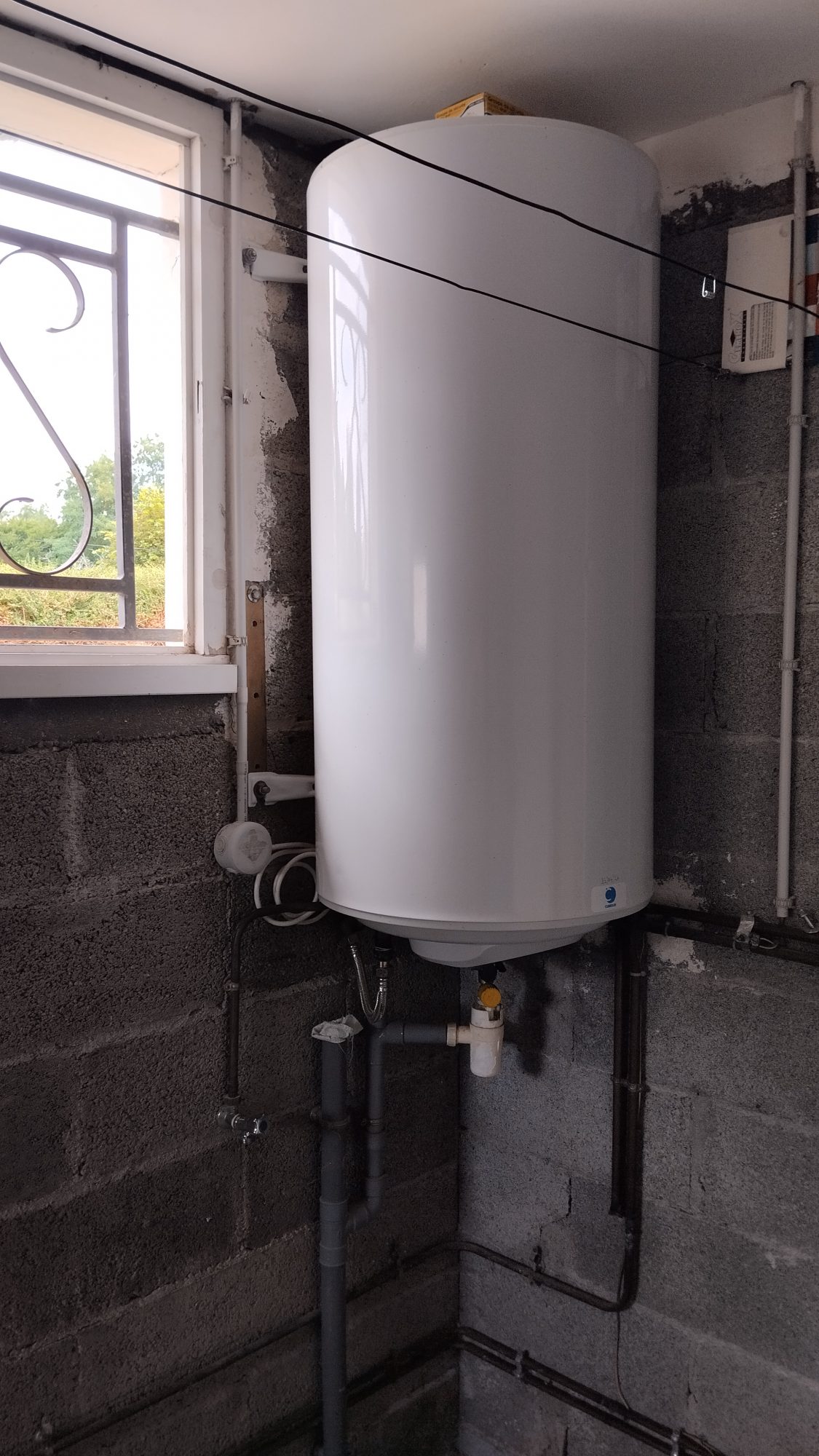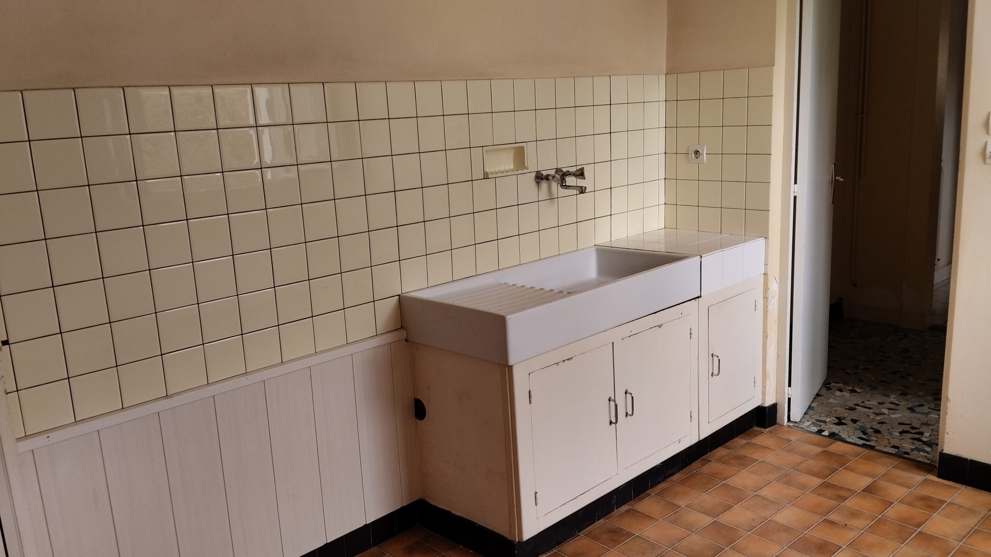 Au rez-de-chaussée : une cuisine, un séjour carrelé (avec conduit de cheminée), un dégagement, une salle d'eau (sèche-serviette), wc, une chaufferie à la suite.