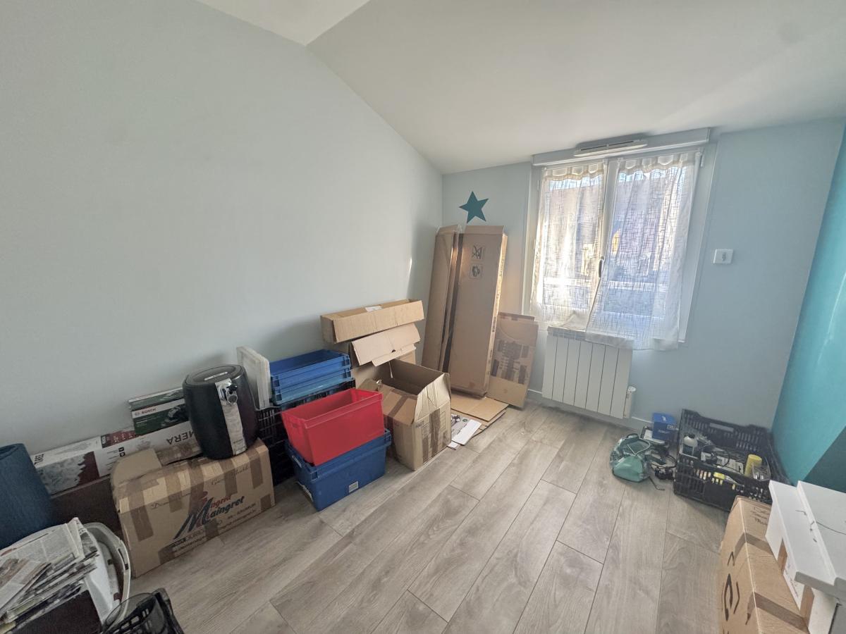 À l’étage : dégagement, grenier, chambre, bureau (ou petite chambre d’appoint) et salle de bains avec WC.