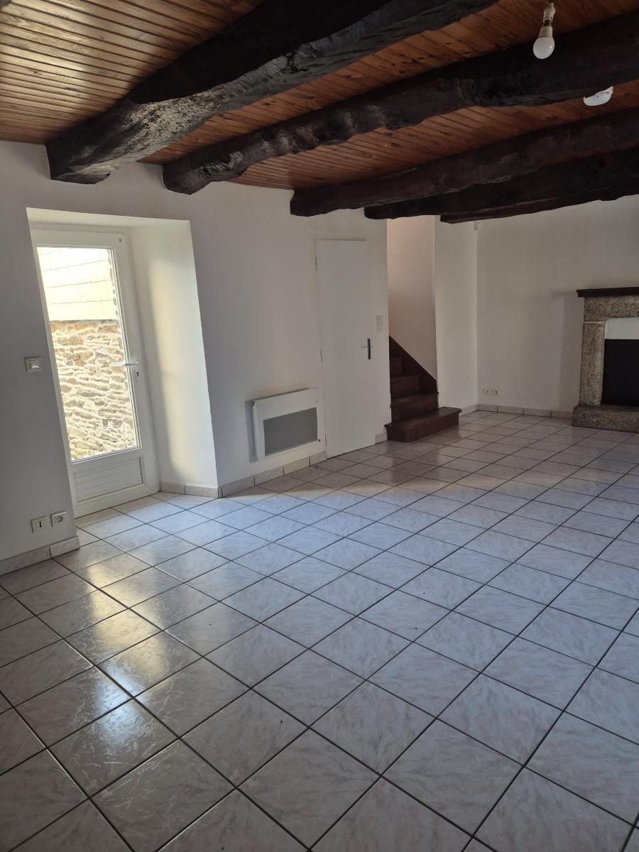 Maison en pierre mitoyenne comprenant un couloir avec wc donnant sur une pièce de vie (cuisine-séjour-salon), un couloir desservant une salle d'eau avec wc, une petite chambre,.