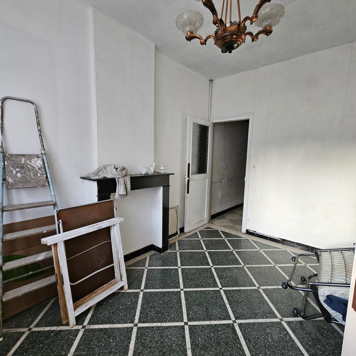 Maison élevée en partie sur cave d'un rez de chaussée comprenant un couloir, un salon, une salle à manger, un cuisine. A l'étage un palier desservant deux chambres et un grenier - Cour et jardin