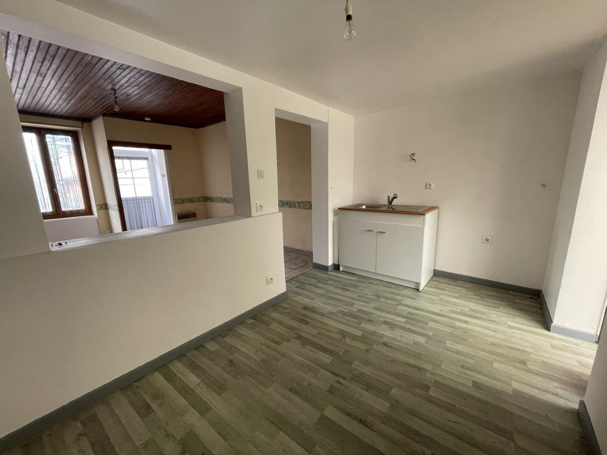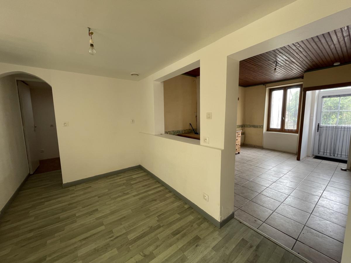 Entrée, puis pièce de vie, desservant une chambre, cuisine ouverte puis dégagement distribuant : WC et salle d’eau.