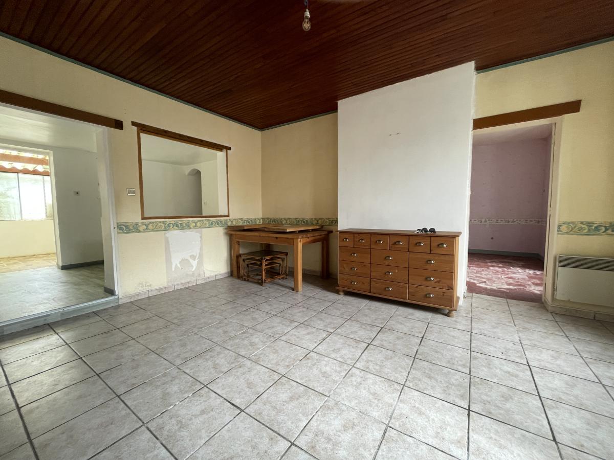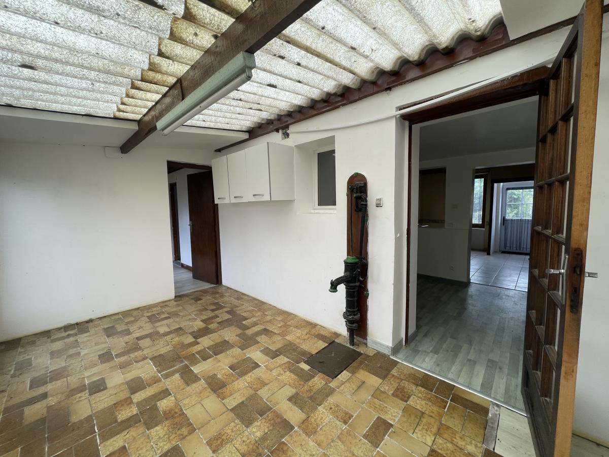 Véranda, cellier donnant accès à l’étage, comprenant deux chambres en enfilade.