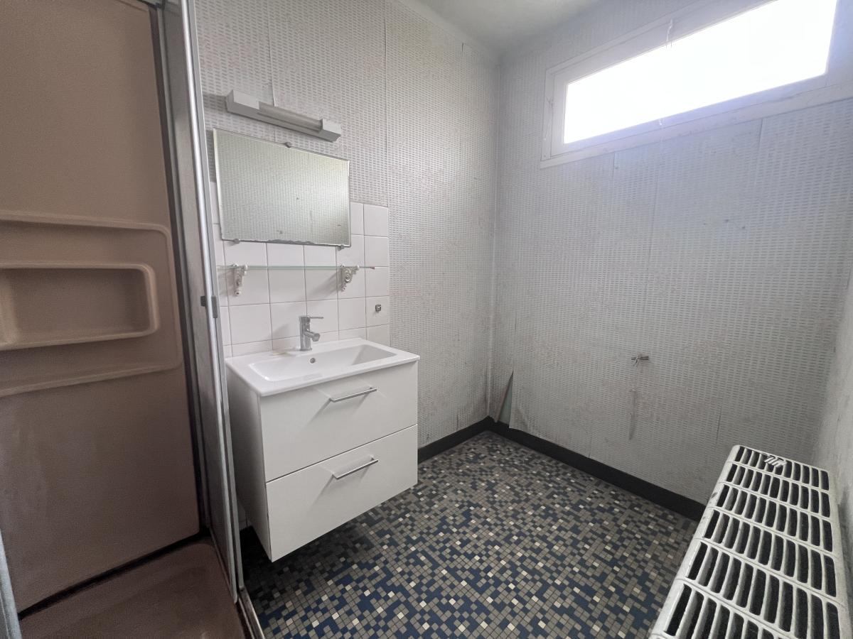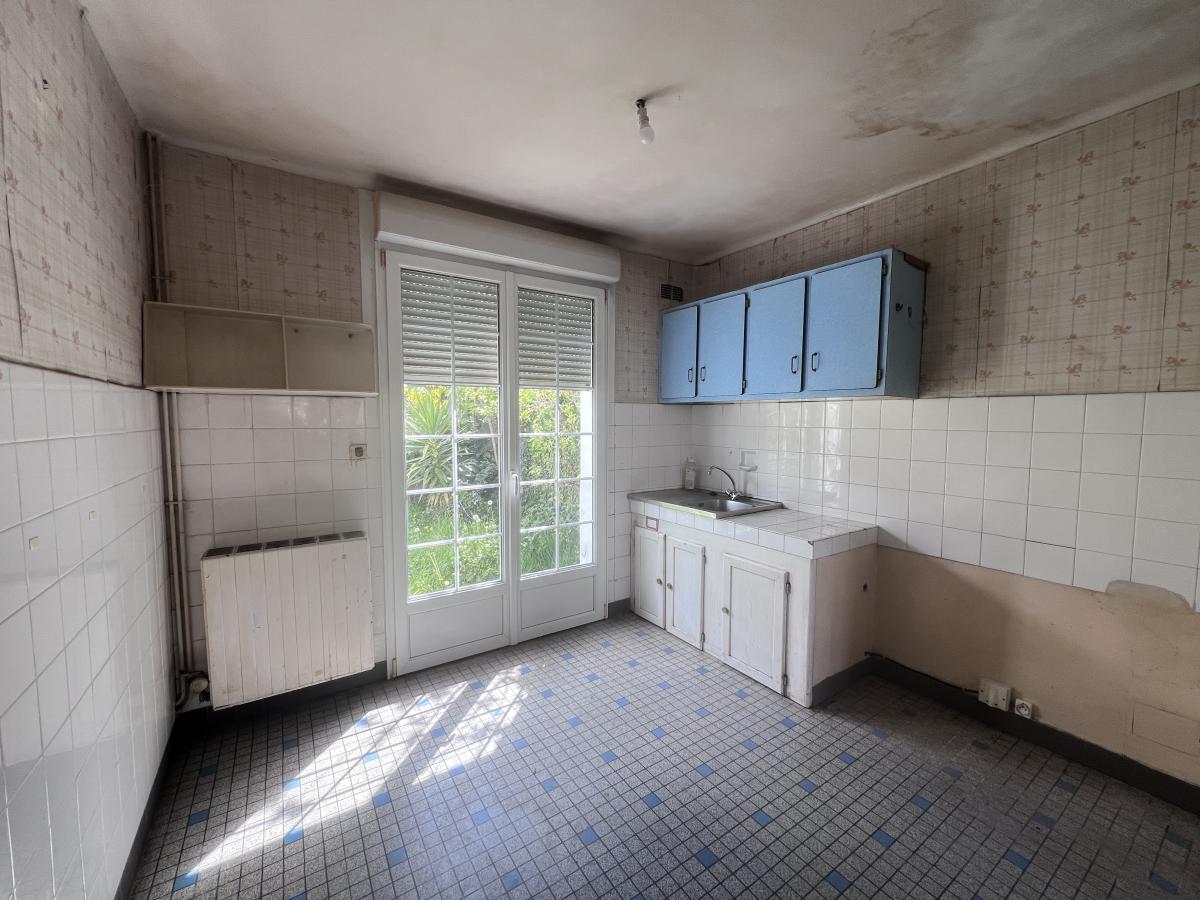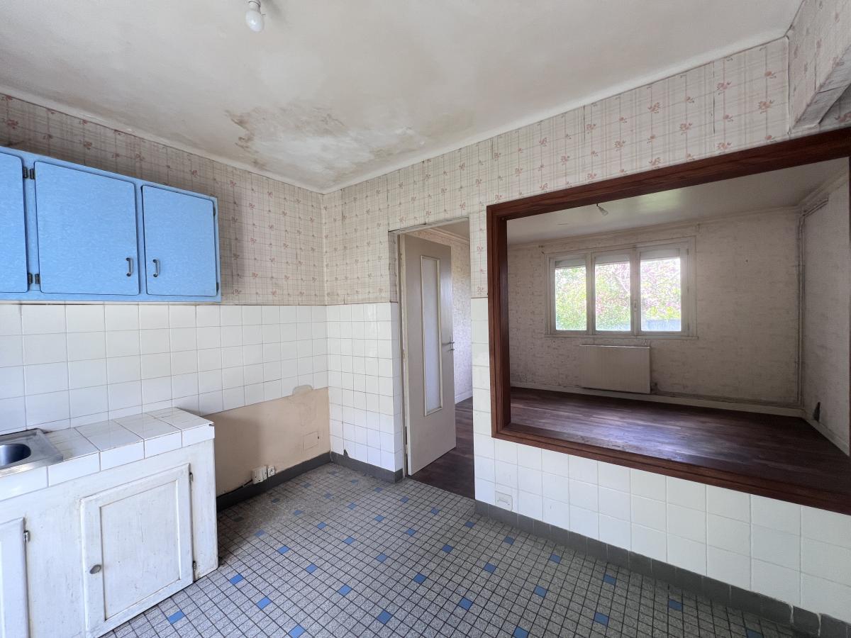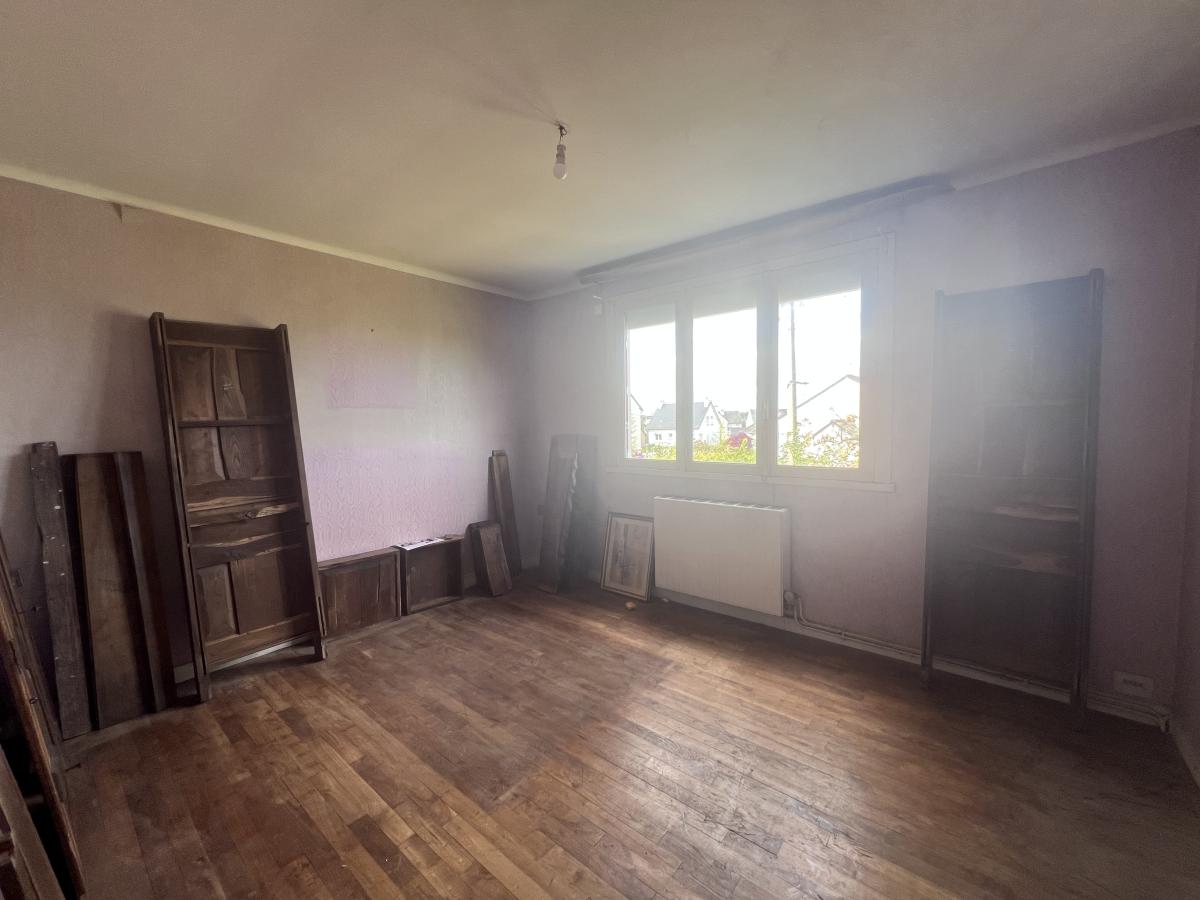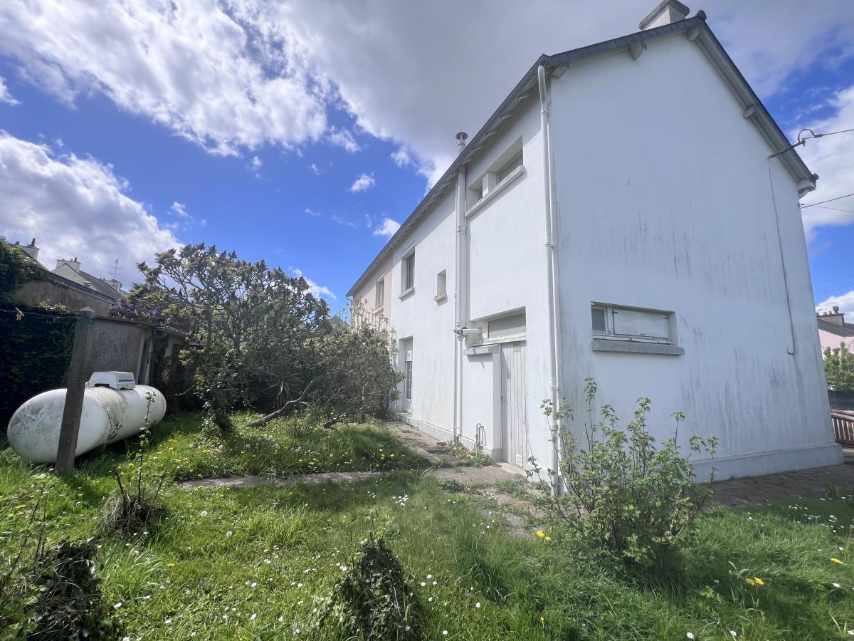 SAINT-BRIEUC, quartier Beauvallon, 2 kms de la gare SNCF, maison d'habitation comprenant au rez-de-chaussée une entrée, cuisine, salon, garage ; L'étage offre un palier desservant 2 chambres, une salle d'eau et des WC. Grenier au-dessus accessible par escalier escamotable. Jardin. Chauffage gaz bonbonne dans le jardin. A rénover.