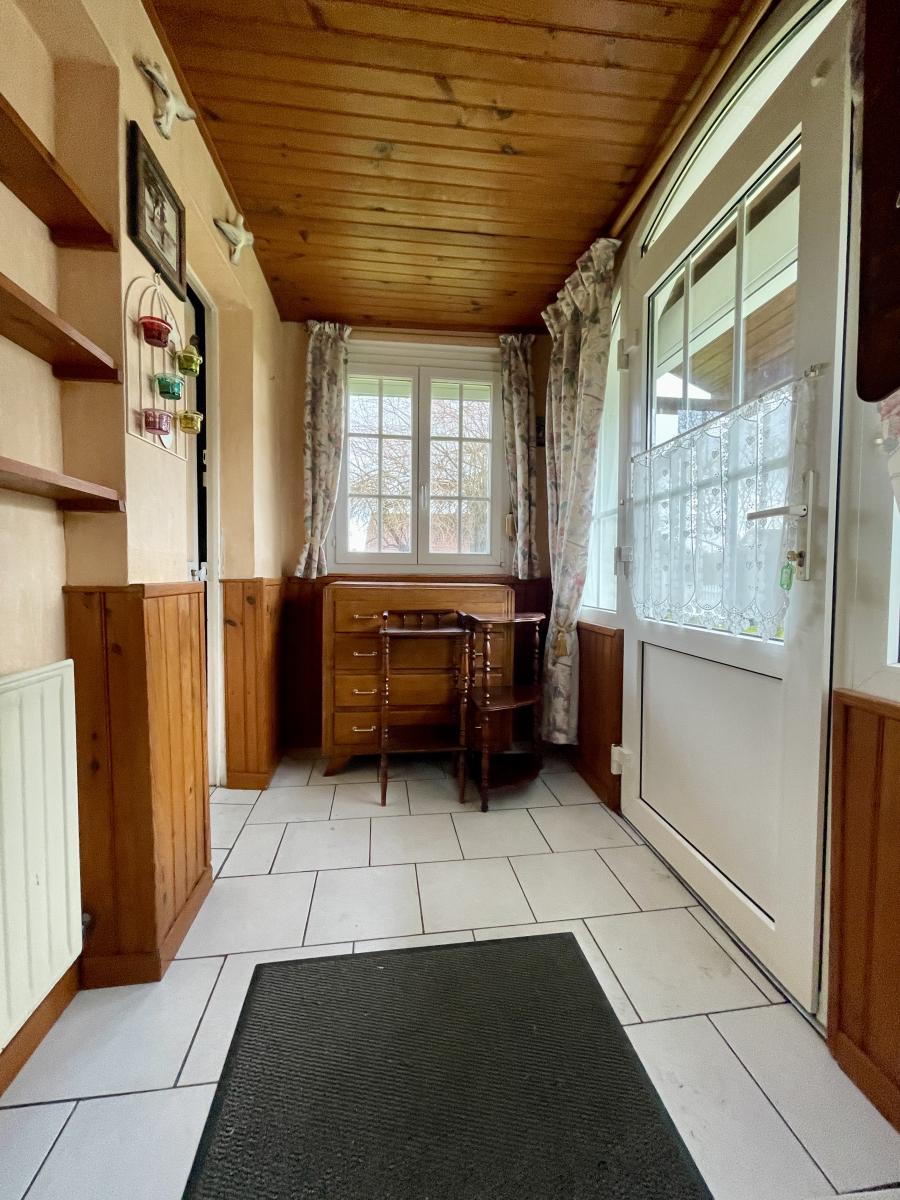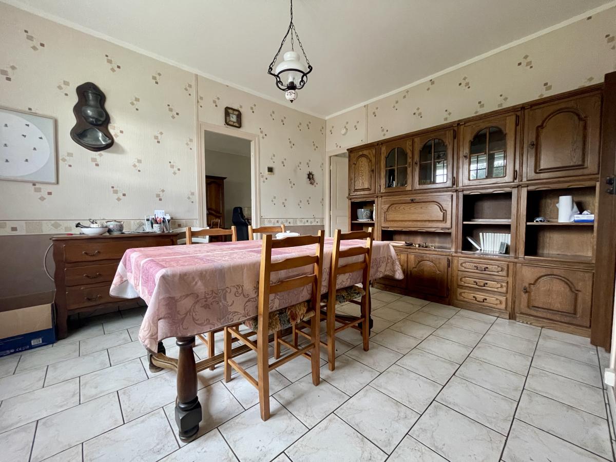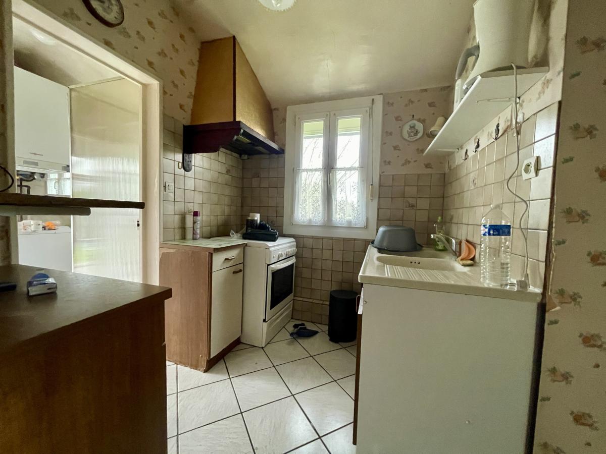 Maison semi-individuelle sur la commune de Thourotte (60150) comprenant entrée, séjour, salle à manger, cuisine, wc, salle de bains, deux chambres. Combles non aménagées. Garage indépendant.