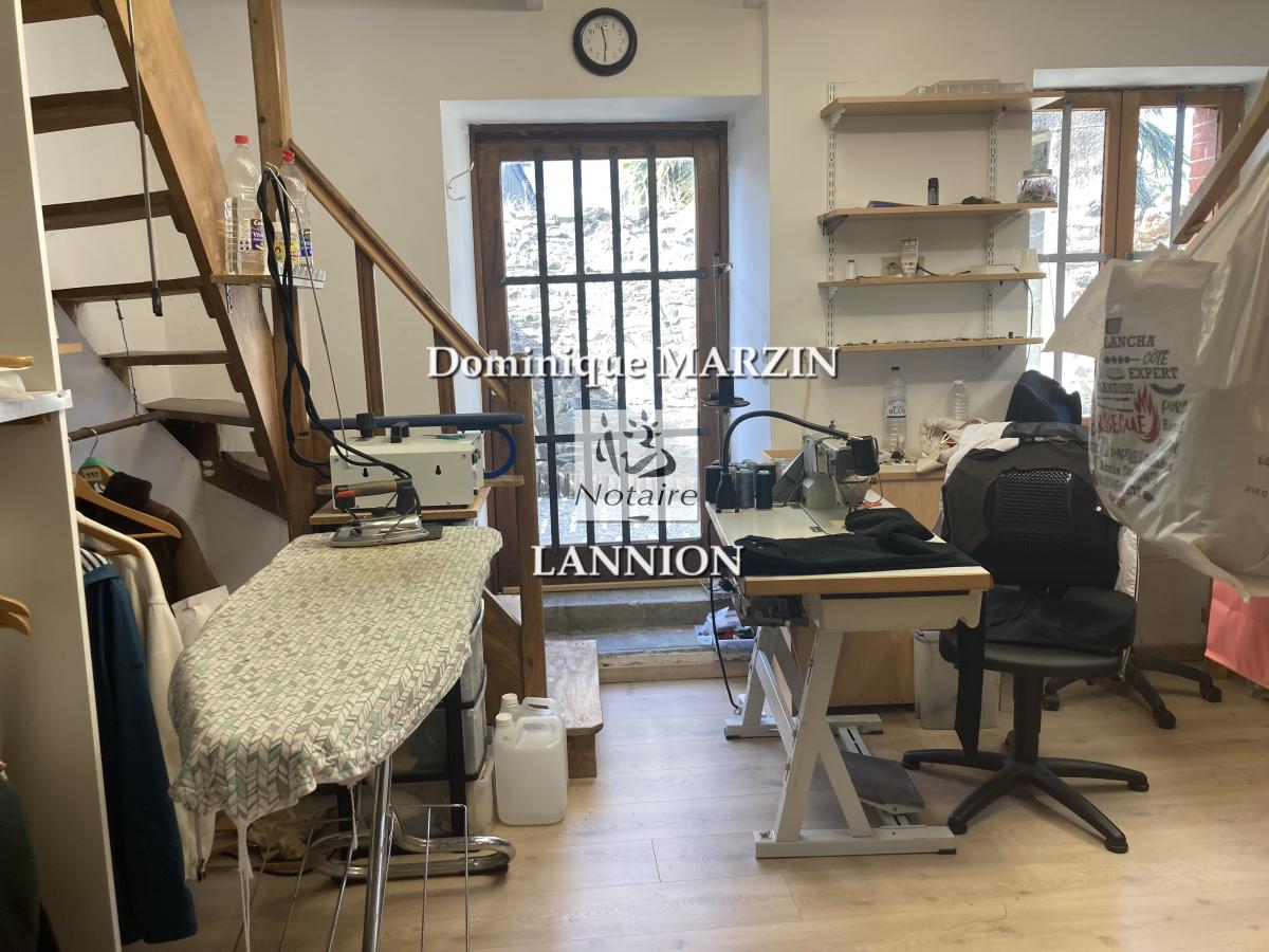 Bien en copropriété situé à LANNION centre (22300), comprenant espace à aménager au rez-de-chaussée, trois pièces et salle d'eau et WC au-dessus. Courette. Possibilité d'aménager en logement locatif T3.