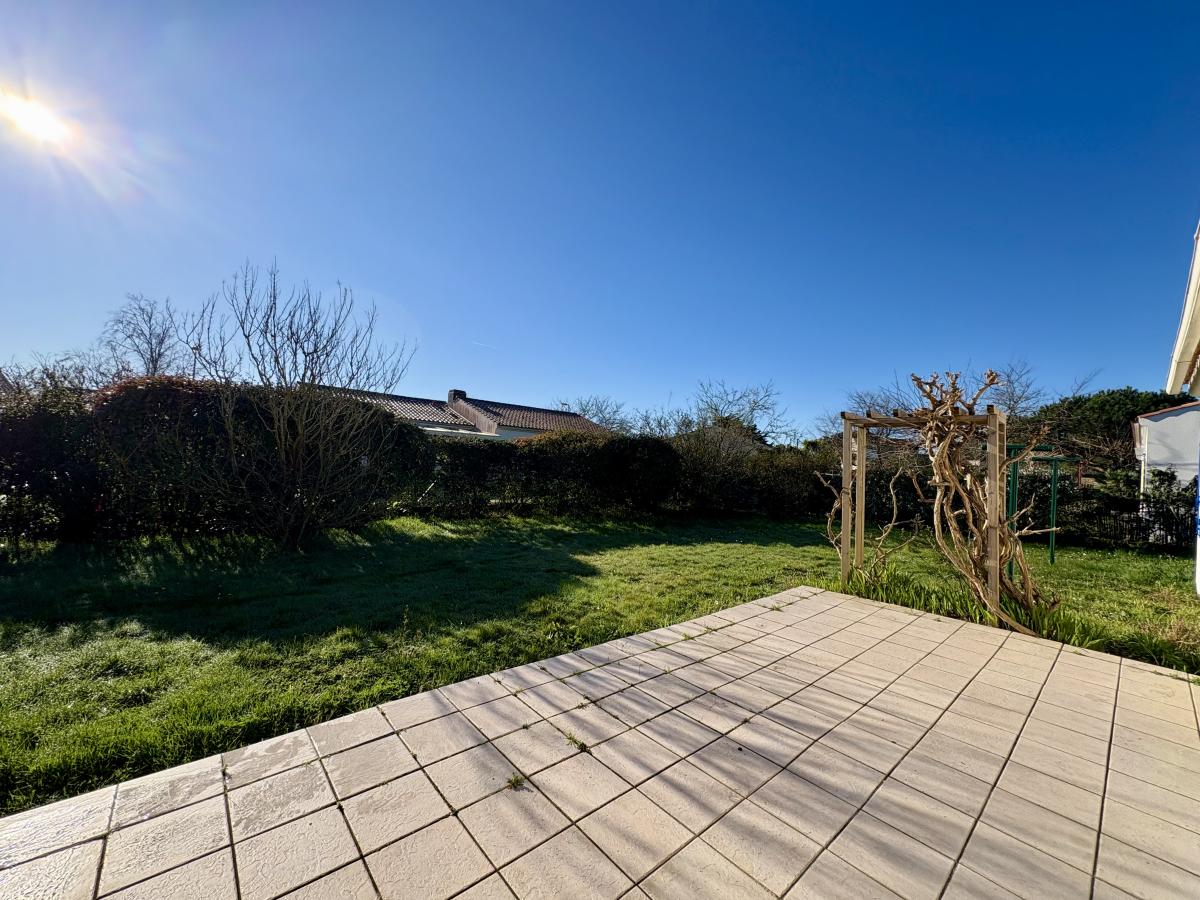 A l'extérieur vous trouverez un jardin arboré et une terrasse avec un store banne (SUD/EST) avec également barbecue extérieur.