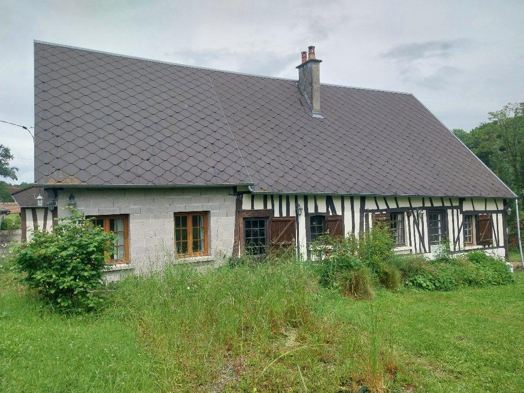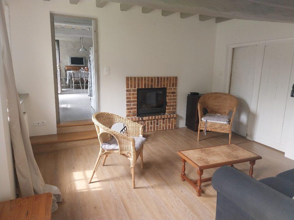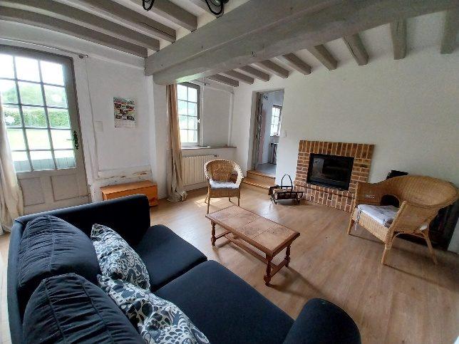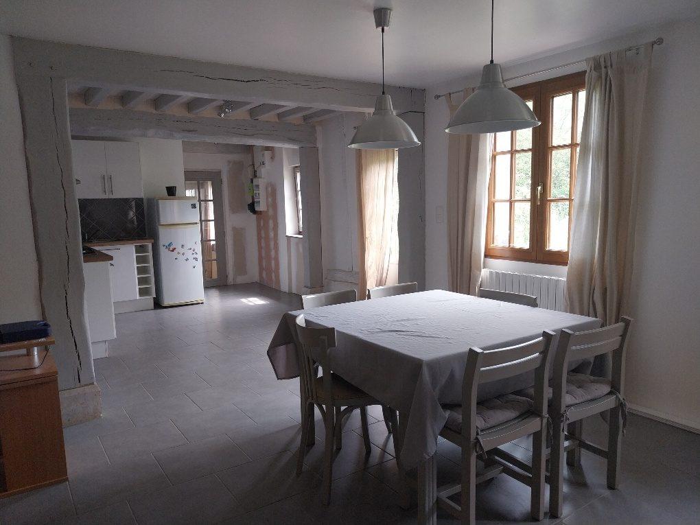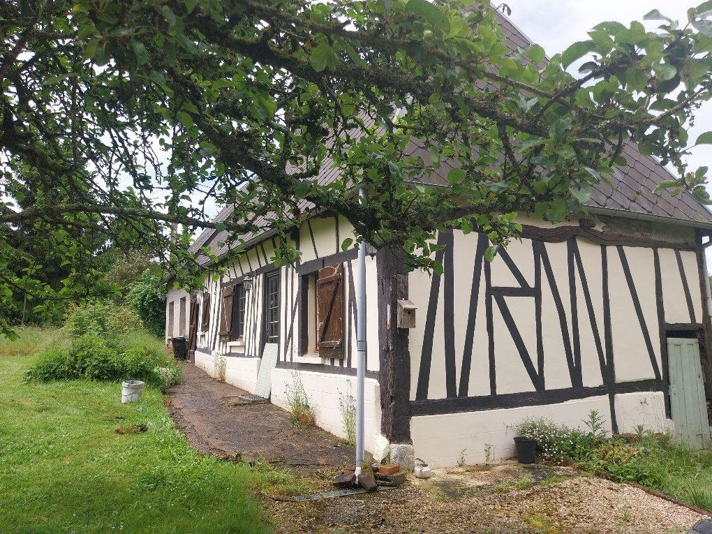Maison normande rénovée comprenant : salle salon de 22 m² et cuisine ouverte de 13.6 m² aménagée et équipée, salon de 15 m² avec cheminée insert, une chambre, wc, salle de douche, un bureau, buanderie/chaufferie.