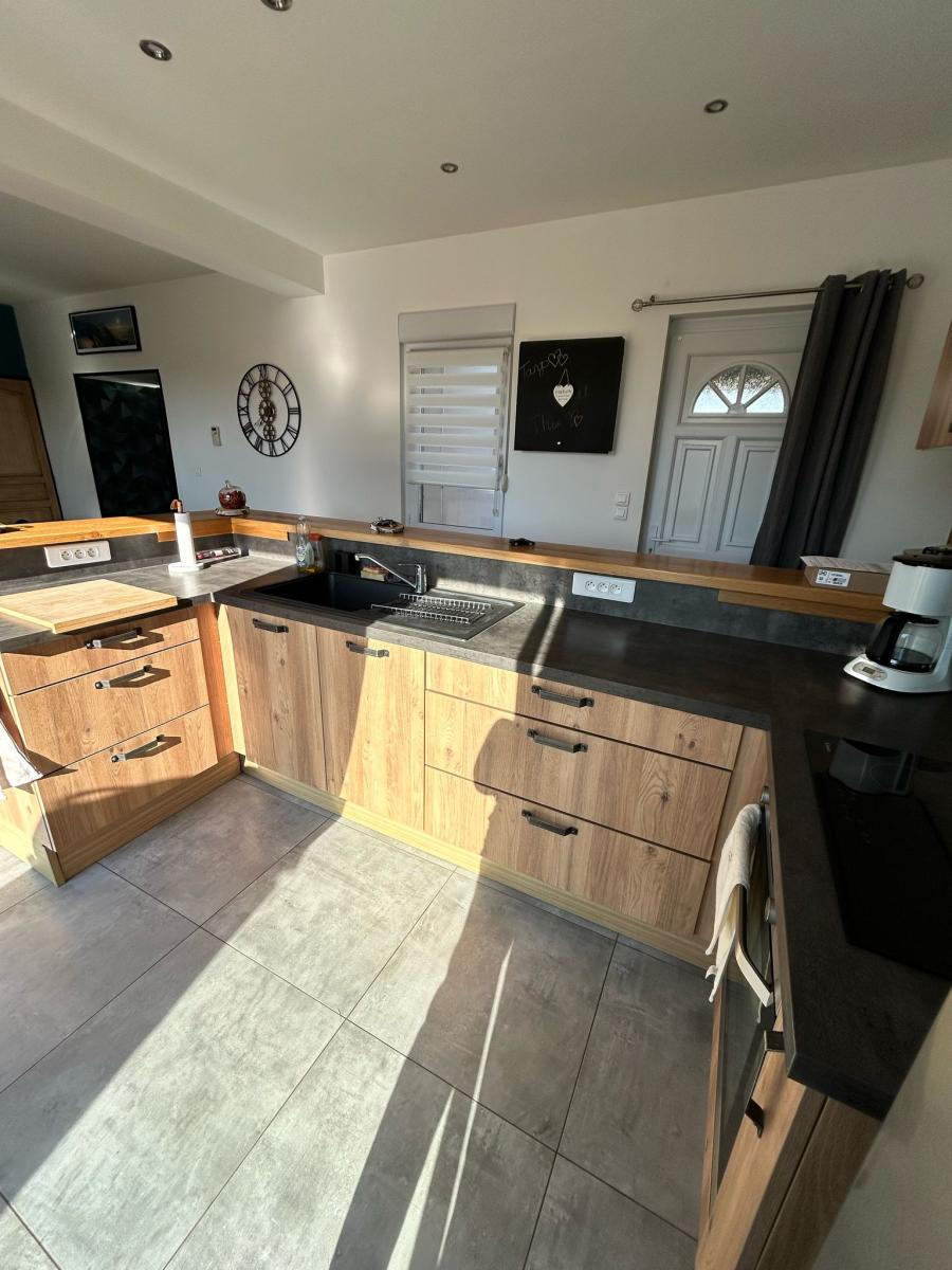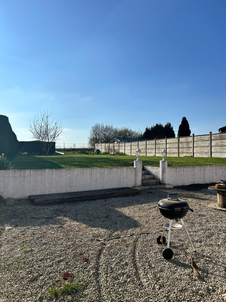 Terrasse bois, pelouse, garage double attenant avec porte télécommandée