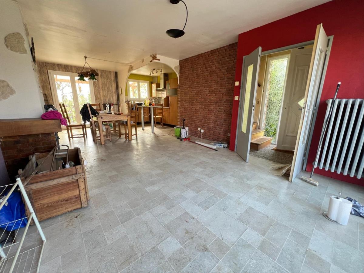 A RENOVER - Maison mitoyenne d'un côté, édifiée sur une parcelle de 250m², en bordure de forêt, comprenant :- Au rez-de-chaussée : Entrée, W.C indépendant, salon ouvert sur salle à manger, cuisine indépendante.- Au premier étage : Palier desservant deux chambres avec placard et une salle de bains avec W.C.- Au deuxième étage : Grenier complet accessible par un escalier escamotable à usage de stockage et chambre d'appoint.- Sous-sol complet à usage de garage, atelier, chaufferie et cave.