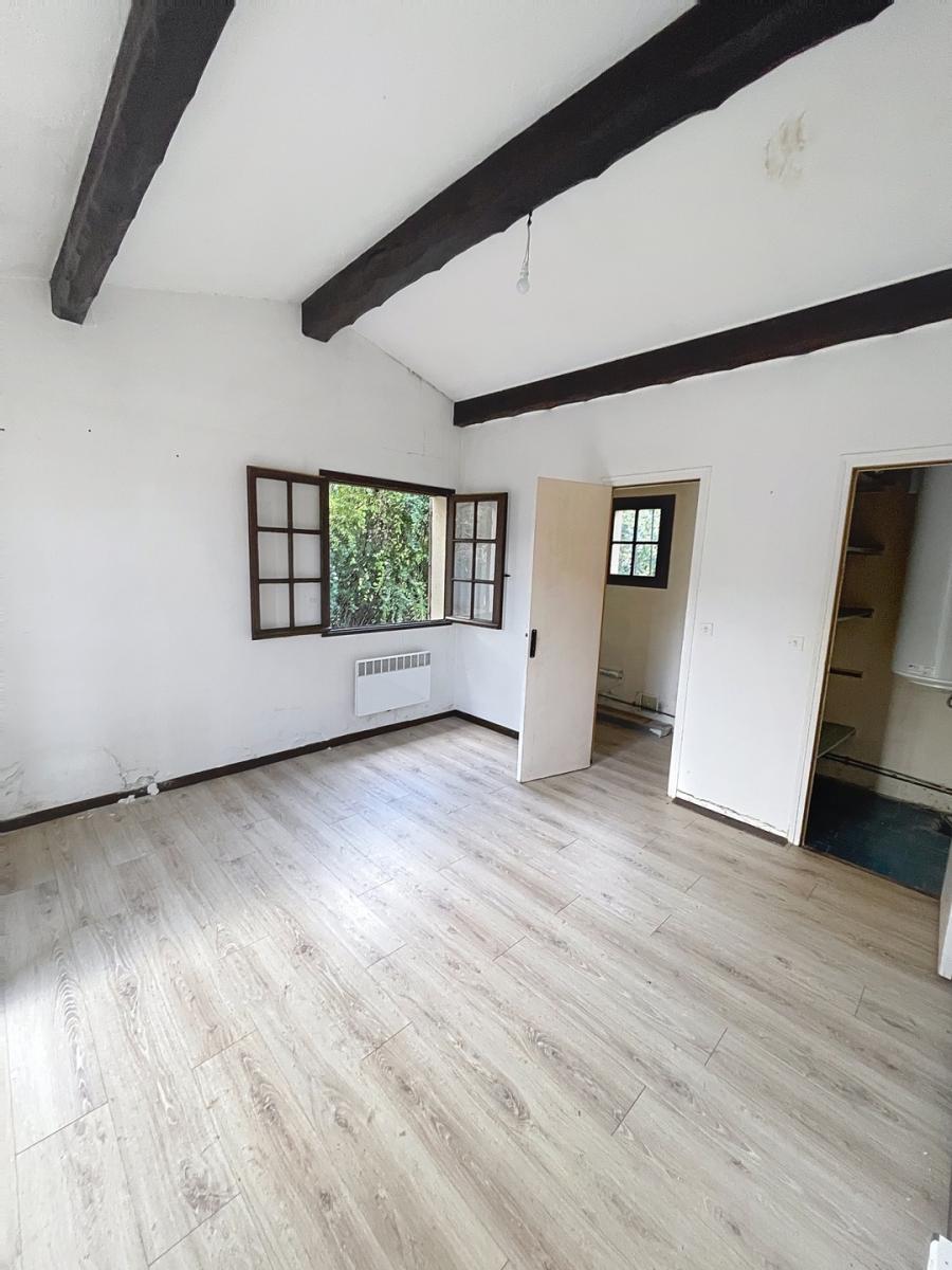 se compose au rez-de-chaussée d'un salon/salle à manger, une petite cuisine, deux chambres, une salle d'eau, une pièce (ancien garage)