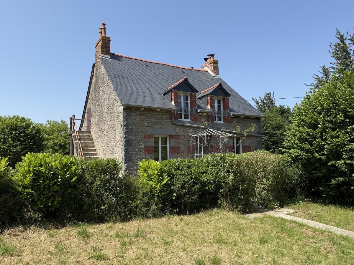 Sur 2749 m2 de terrain, maison indépendante en pierres sous ardoises, élevée sur sous-sol et comprenant au rez de chaussée une cuisine/salon, deux chambres, salle d'eau, wc ; accès par l'extérieur pour l'étage : comble aménageable (grande pièce). En appentis pièce avec cheminée et petit comble. Dépendance à usage de débarras. Puits.