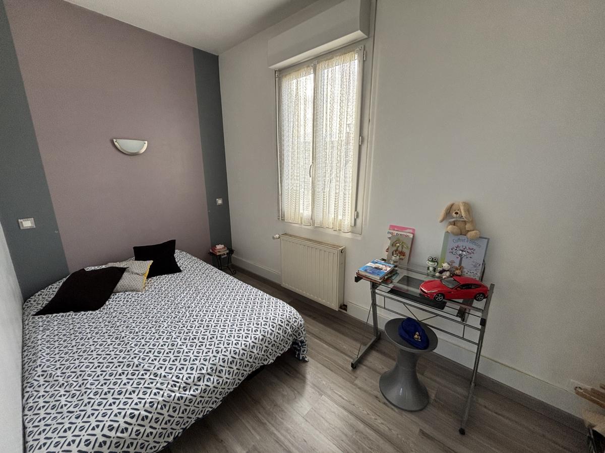 À l’extérieur, la maison bénéficie d’un jardin clos sur 555 m² de superficie cadastrale, d’un garage et d’une cave, offrant des espaces de rangement pratiques.