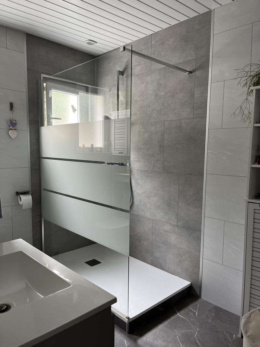 - en rez-de-chaussée : une pièce de vie avec poêle, une cuisine ouverte aménagée, une salle d'eau avec WC, une buanderie.
