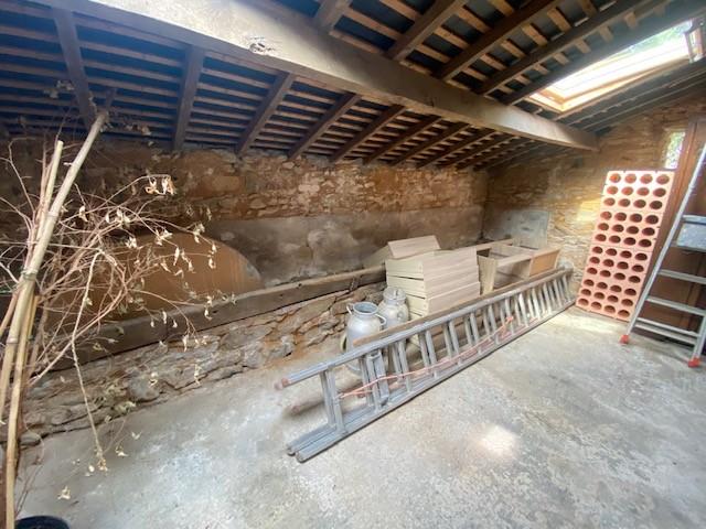 Au calme maison en pierre comprenant au rdc, un agréable salon/séjour avec cuisine ouverte A/E, un dégagement, une chambre, un WC et une salle de bains. Au 1er étage, un dégagement, un bureau, un WC et deux chambres. Le tout sur un terrain d'environ 3503m² avec garage d'environ 43 m². En complément garage attenant véranda et dépendances en pierre attenante à la maison pouvant être réhabiliter en espace de vie.