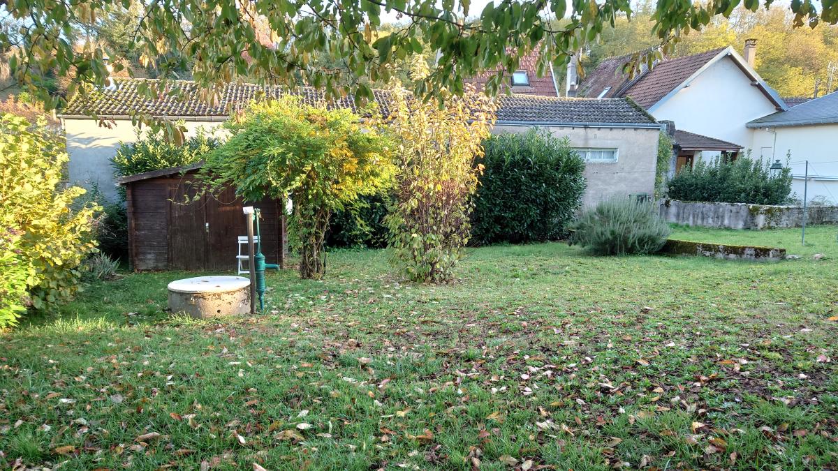 Garage, buanderie et local technique, cave, puits, jardin avec chalet bois à usage de remise.