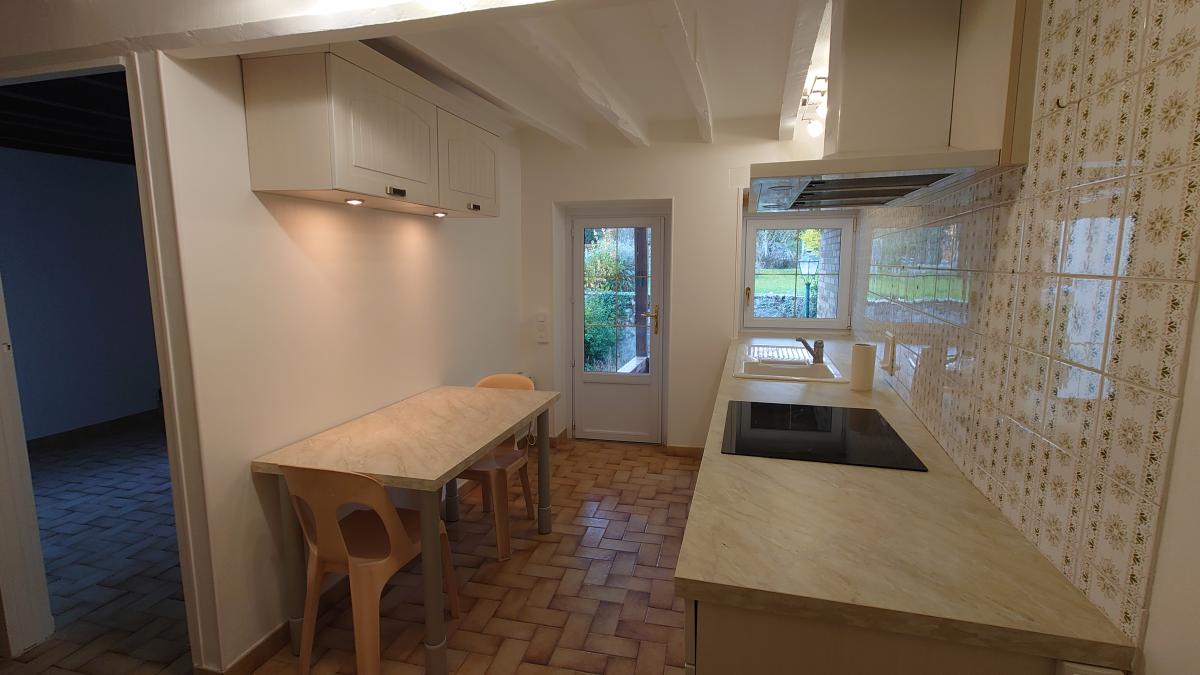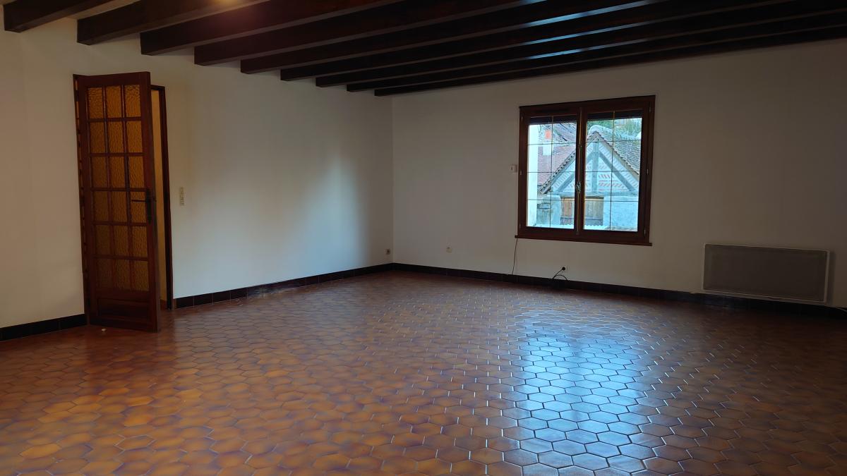 Maison dite de village en bon état général comprenant séjour de 35 m², bureau, cuisine aménagée avec accès sur terrasse et jardin, salle d'eau avec wc, à l'étage, une chambre, autre pièce en mezzanine.