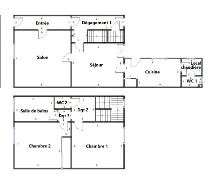 - au RDC : entrée, salon, séjour, cuisine, chaufferie/buanderie, WC