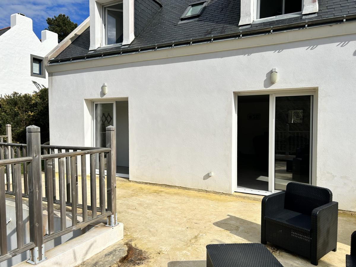 BELLE ILE EN MER - Située à 500 mètres du centre de LE PALAIS et  à quelques mètres d'une plage,  maison au calme avec vue dégagée comprenant au rez-de-chaussée: entrée, cuisine ouverte sur séjour , W.C. A l'étage: trois chambres, salle d'eau et W.C. Garage d'environ 90m² au niveau n-1. Terrasse avec vue mer d'environ 27m². LE PALAIS