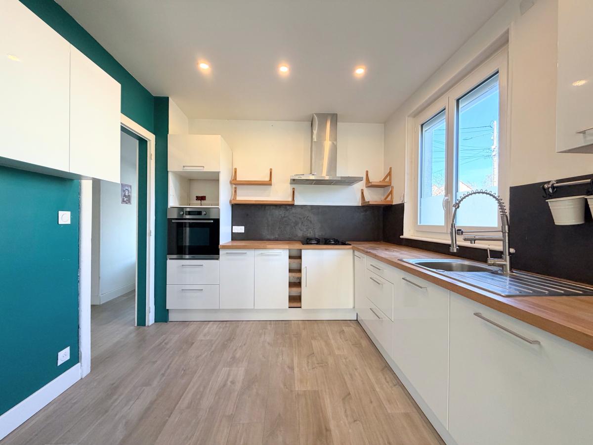Maison individuelle bâtie dans les années 70 sur sous-sol, accessible de plain-pied avec terrain attenant de 934 m². Elle dispose au rez-de-chaussée : cuisine équipée ouverte sur la pièce de vie avec un accès à la terrasse, elle peut être chauffée par un poêle à granulés, 3 chambres, une salle de bain et un WC ; au sous-sol : garage 1 voiture avec porte motorisée, chaufferie/buanderie avec chaudière au gaz basse température et une pièce à aménager. La maison dispose d'un garage attenant ainsi que d'un abri de jardin à reprendre. Huisseries en double vitrage PVC avec volets électriques, assainissement au tout à l'égout, taxe foncière de 622 €.