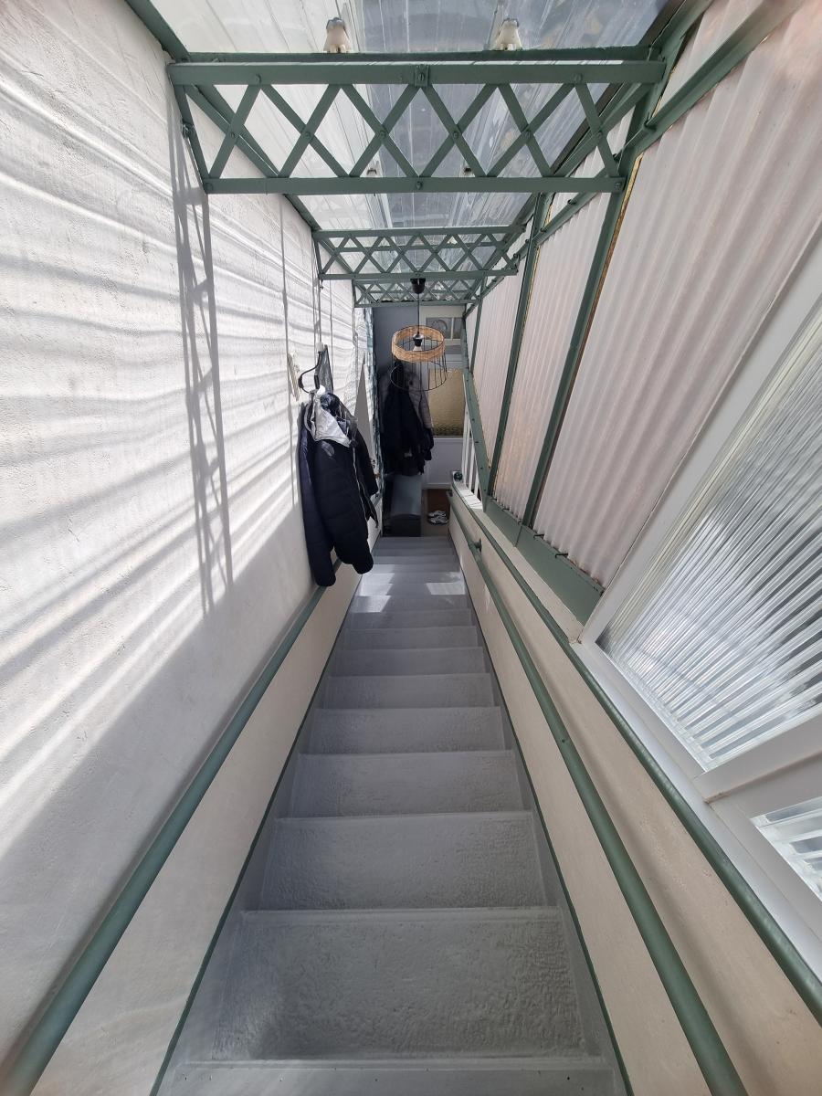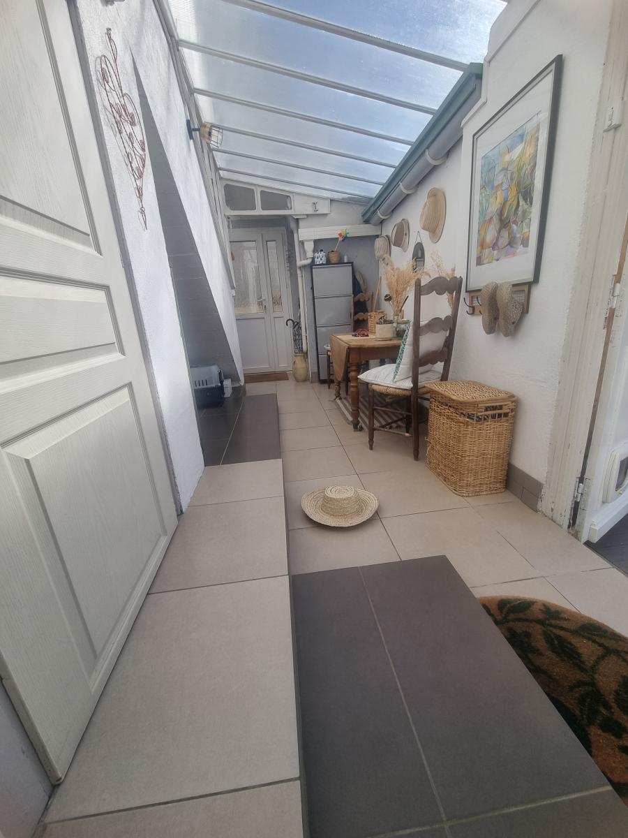 Elle se compose d’une agréable véranda faisant office d’entrée, offrant un espace accueillant et baigné de lumière. Celle-ci donne accès à un jardin exposé plein sud, sans vis-à-vis, idéal pour profiter des beaux jours en toute tranquillité.