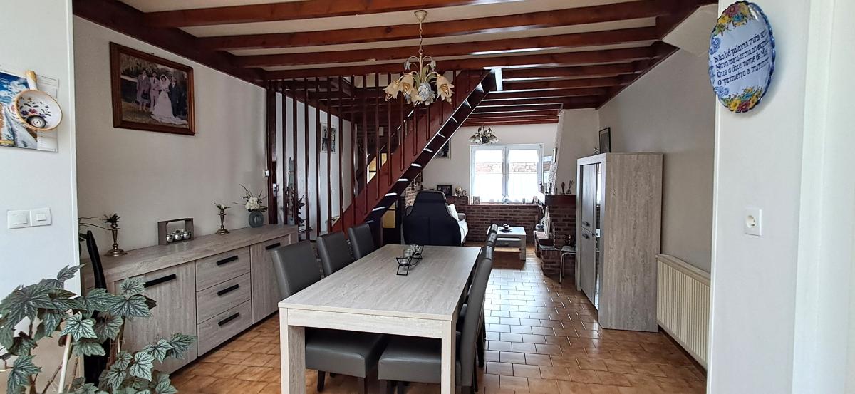TOURCOING Cette maison des années 30 de type semi flamande, d’environ 80 m² habitables comprend au rez-de-chaussée un salon/séjour, une cuisine meublée avec un espace repas, une salle de bains récemment rénovée et des toilettes. À l’étage, deux chambres, dont une de passage donnant accès à un bureau ou salle jeux aménagé sous les combles. Sa cour offre un espace extérieur qui peut être facilement agrandi en supprimant le cabanon. Un atout non négligeable. Ce bien est lumineux, très bien entretenu et bénéficie d’un environnement calme. Sa proximité avec les commodités (commerces, transports, écoles) est un vrai plus au quotidien. Elle est équipée du ccgaz, double vitrage en partie.. DPE 188 D et 41 D. Prix de vente 137 900 € dont 130 000 € net vendeur et dont 7.900 € TTC (6.08 %) d'honoraires de négociation à charge acquéreur. Les informations sur les risques auxquels ce bien est exposé sont disponibles sur le site Géorisques : www. georisques. gouv. frConsultez nos tarifs : Selon barème de l'étude chargée de la vente : < 100.000 € = 7.000 € TTC, 100.000 € et 300.000 € = 3 % TTC sur la partie du prix supérieur à 100.000 € qui se cumule avec la tranche précédente, > 300.000 € = 5 % TTC sur la partie du prix supérieur à 300 000 € qui se cumule avec les tranches précédentes, arrondis à la centaine d’euros la plus proche, minimum de perception pour les parkings 2.000 € TTC et 5.000 € TTC pour les garages.