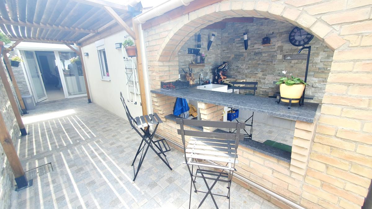 Extérieur terrasse avec pergolas bois, cuisine Extérieur, jardin, dépendances, parking sur l'avant avec portail motorisé.