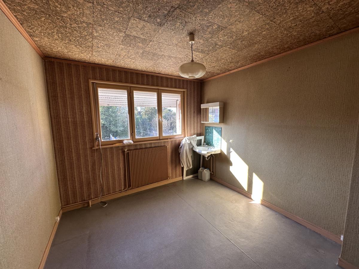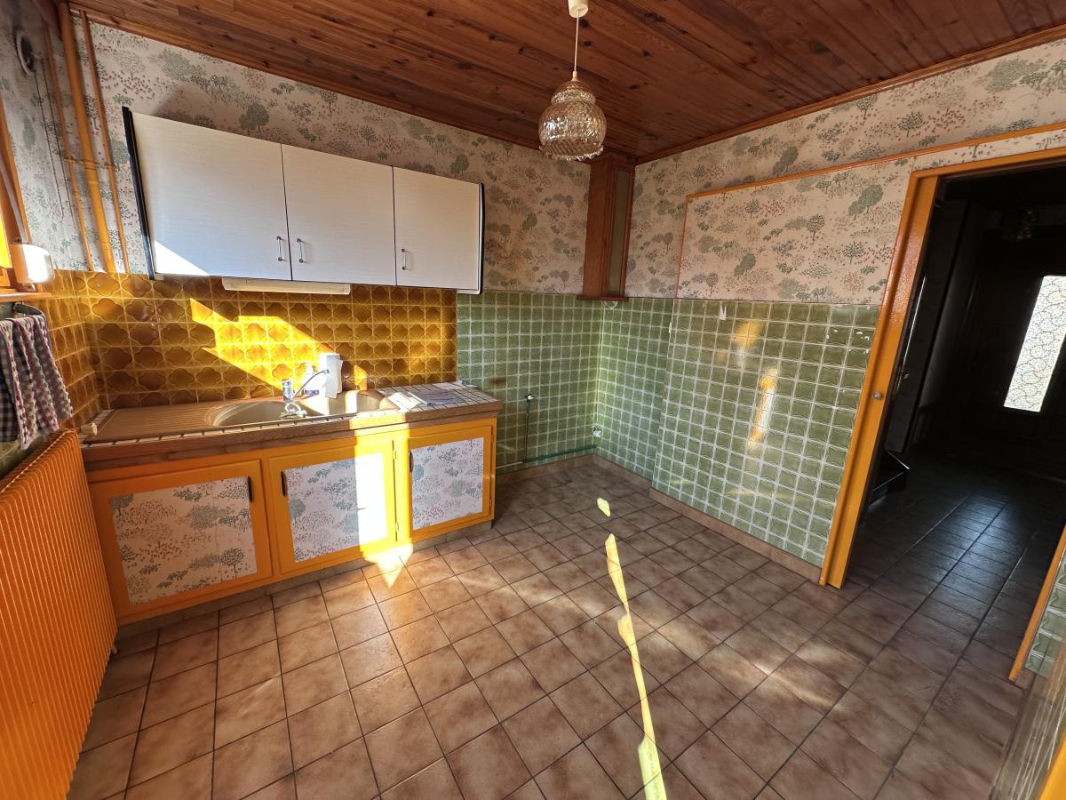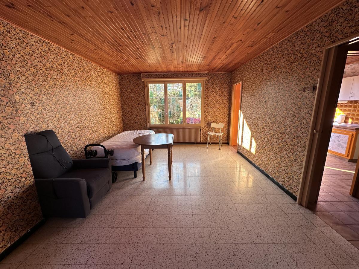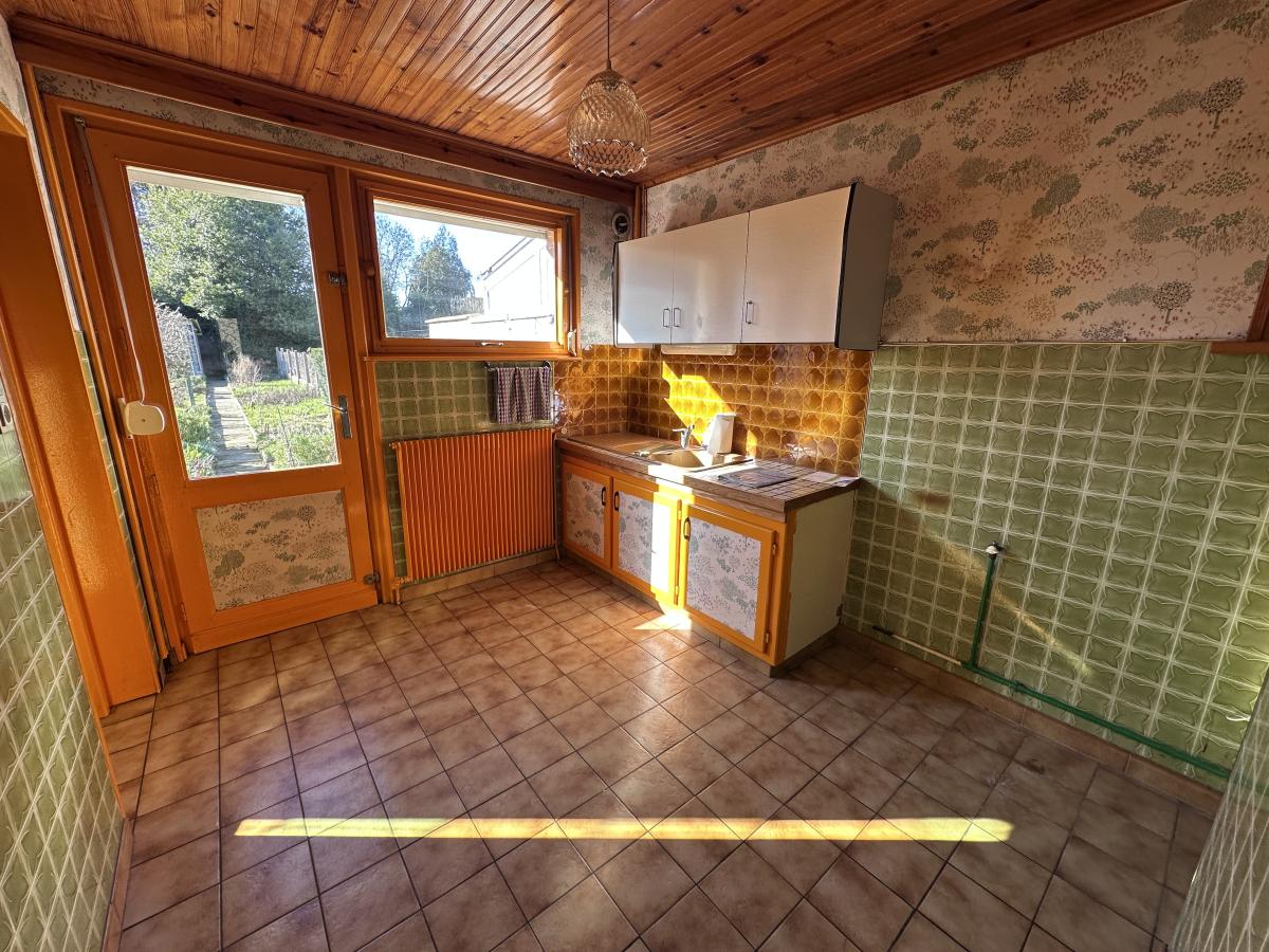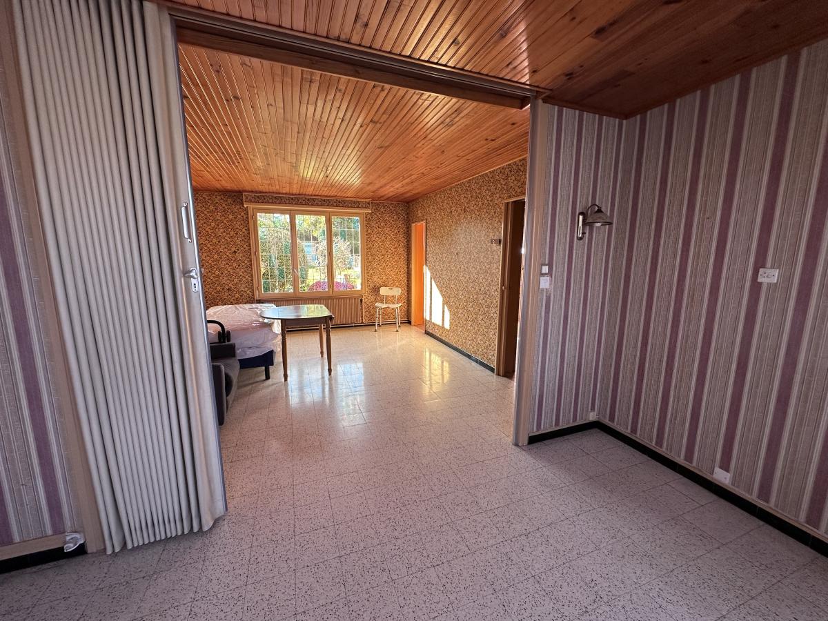 Maison des années 60 offrant hall, séjour, cuisine et WC au rez de chaussée,