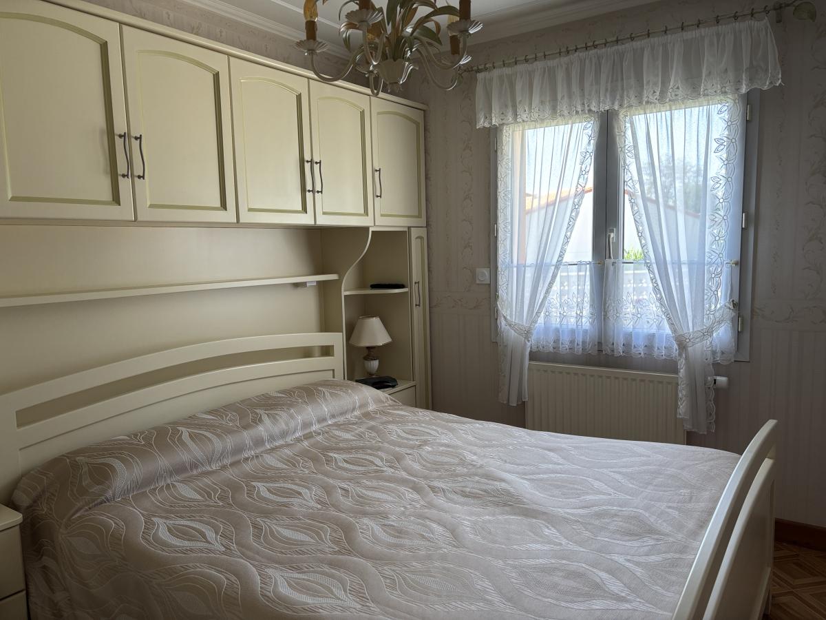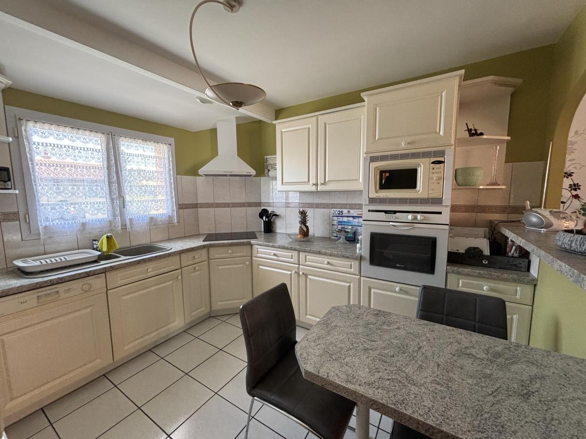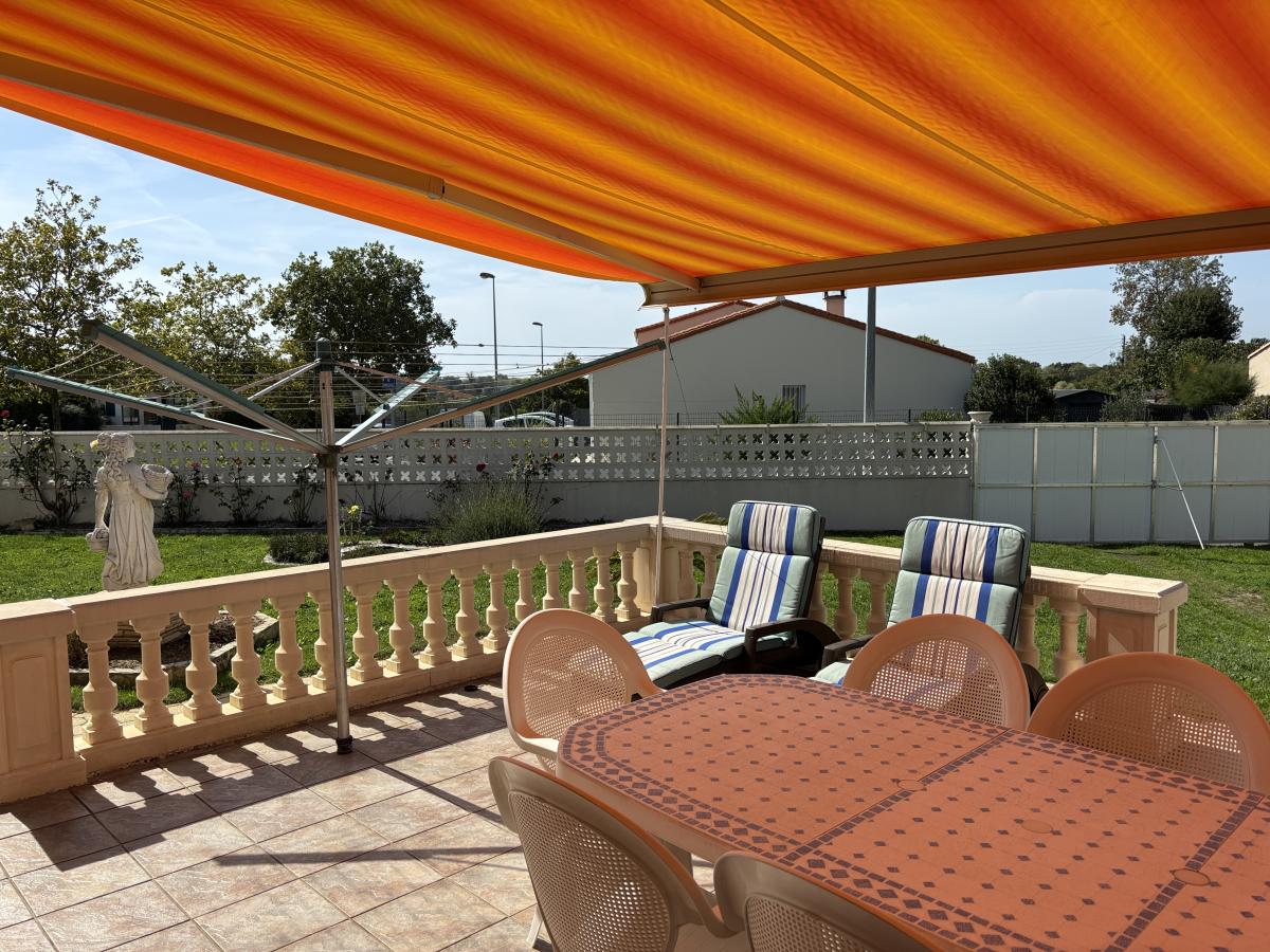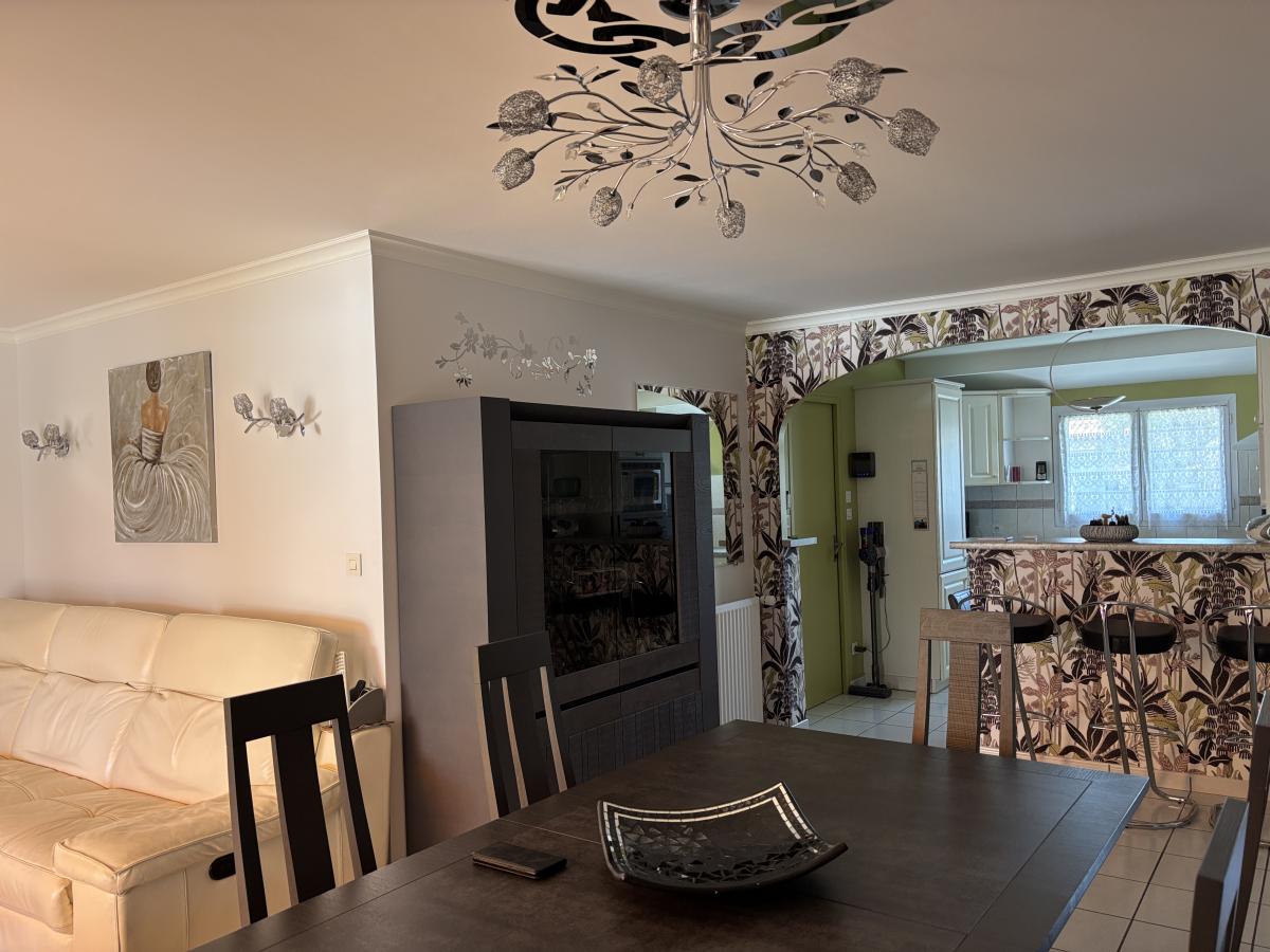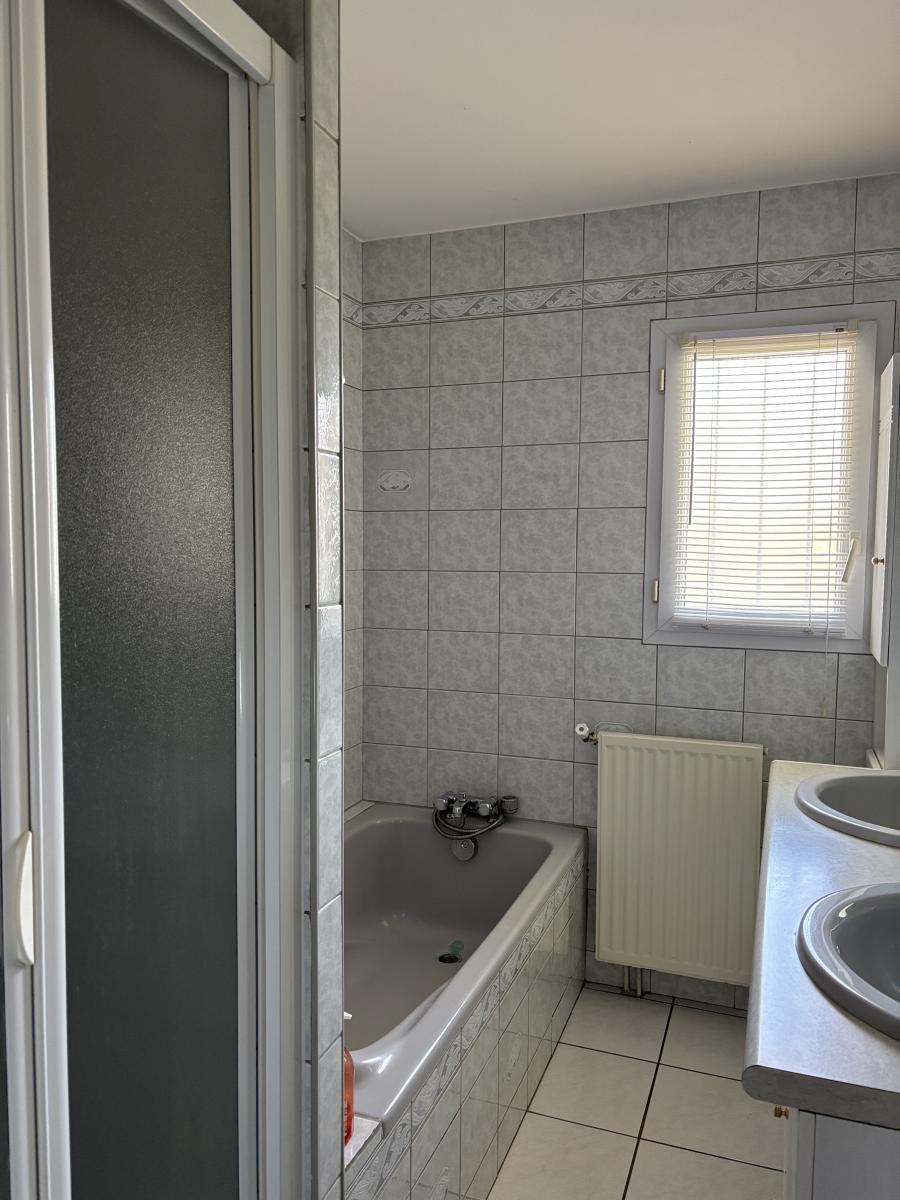Une entrée ouverte sur le salon - séjour avec accès à la terrasse (store banne), une cuisine aménagée ouverte sur le séjour, un couloir avec placard desservant trois chambres dont une avec placard, une salle de bains (baignoire, douche et double vasque), WC.
