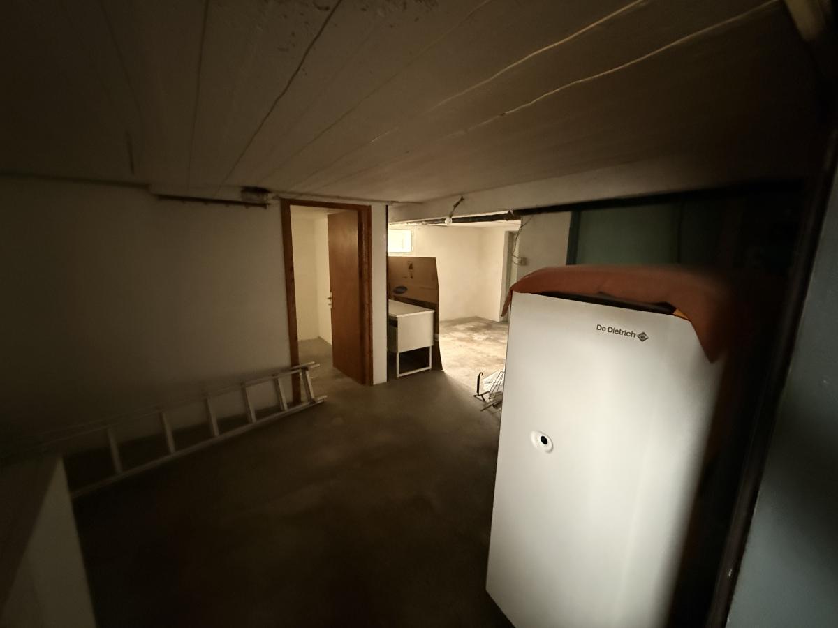 Sous-sol complet avec garage , chaufferie, cave et atelier.