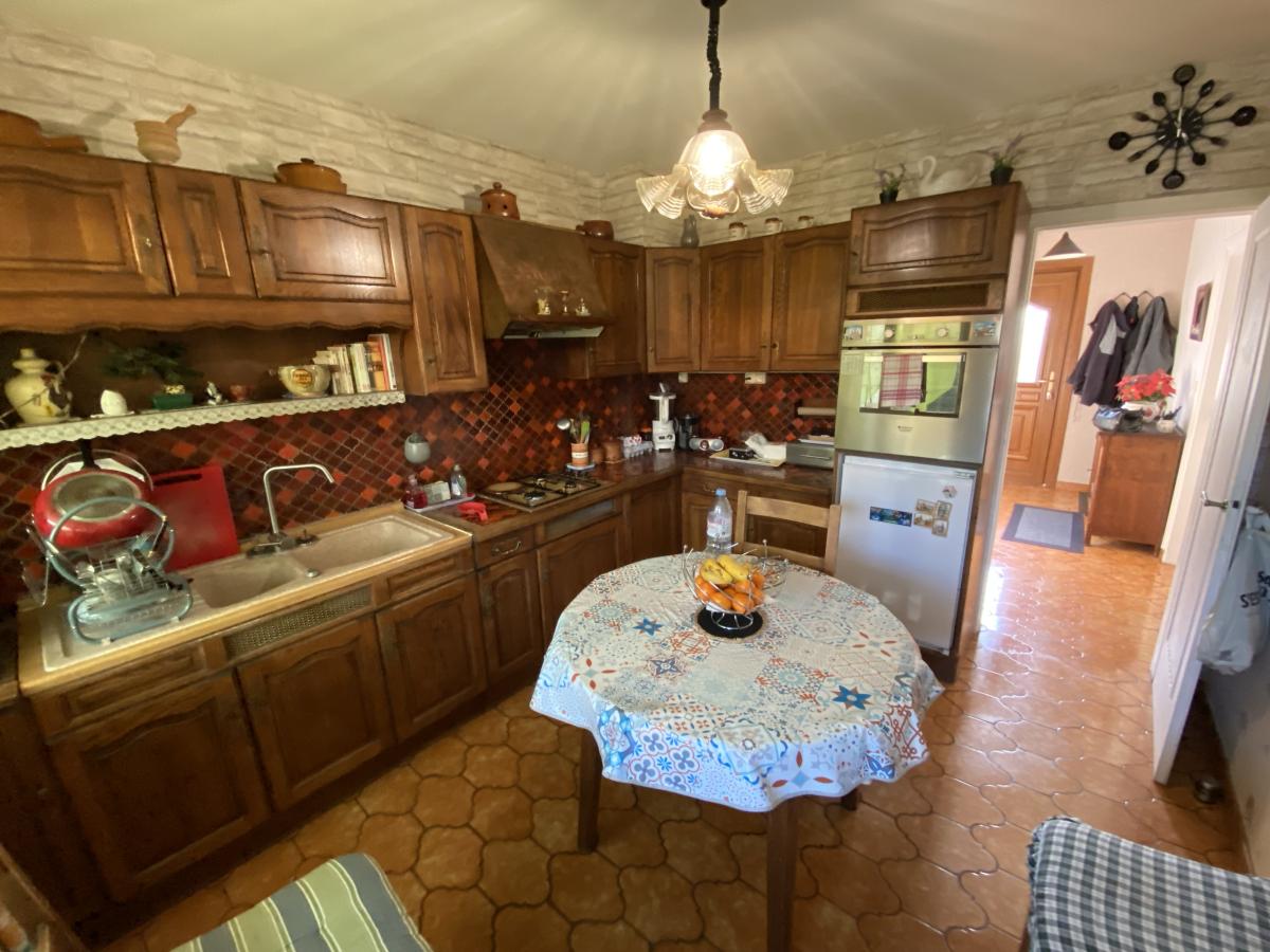 Maison des années 60 offrant grand séjour, cuisine, salle de bain et WC.