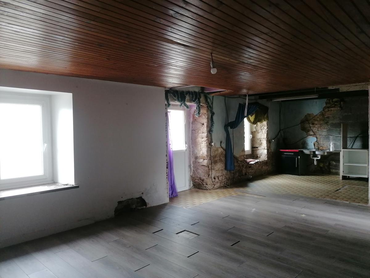 Maison de ville mitoyenne composée d'une pièce à vivre avec cuisine ouverte, WC, salle d'eau; A l'étage, un palier desservant 3 chambres. A l'extérieur, un jardin, une dépendance et un garage.