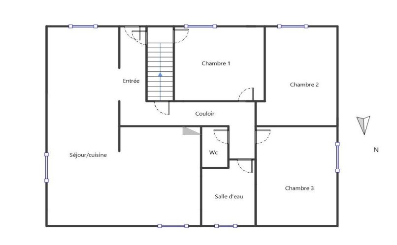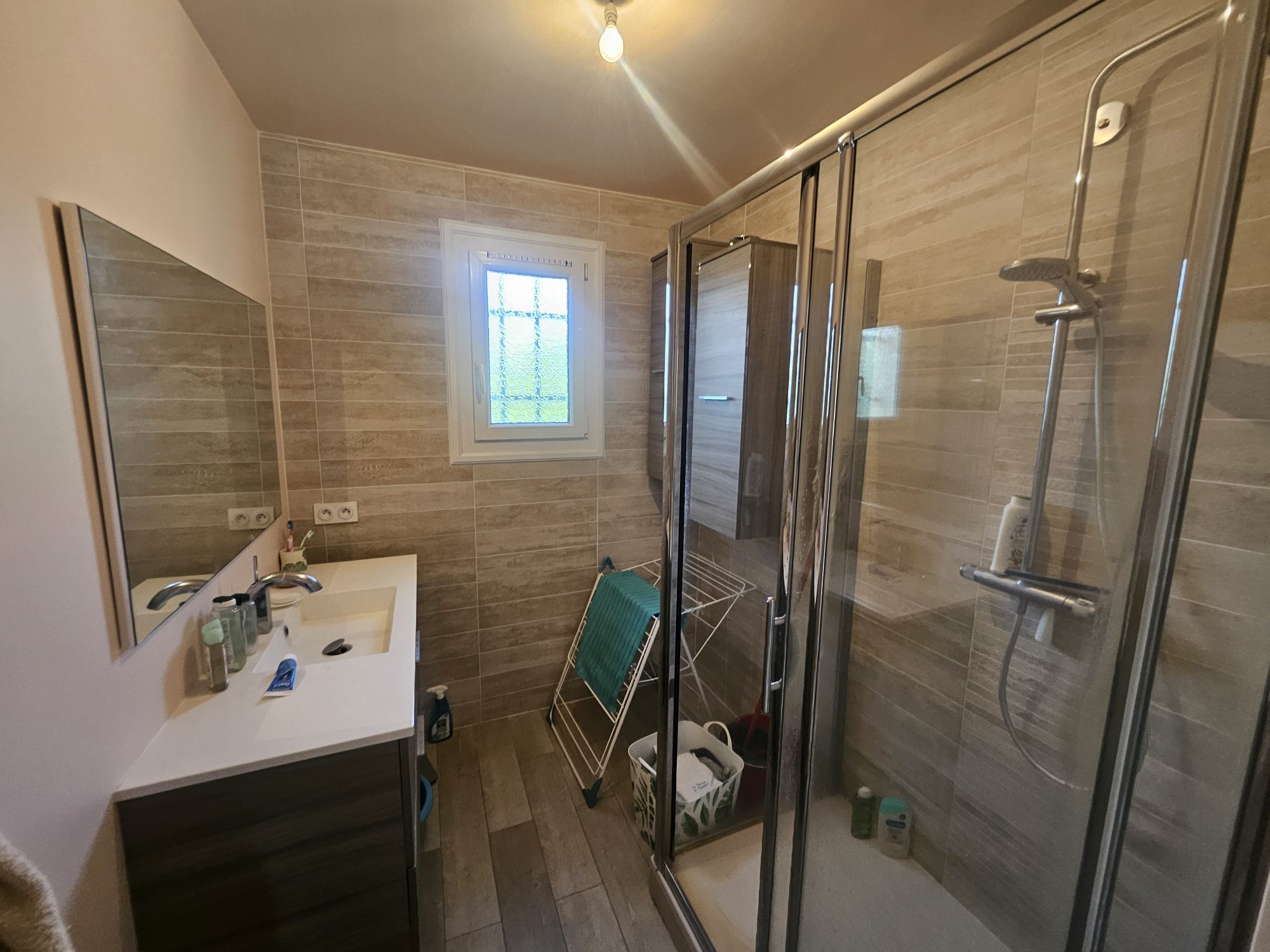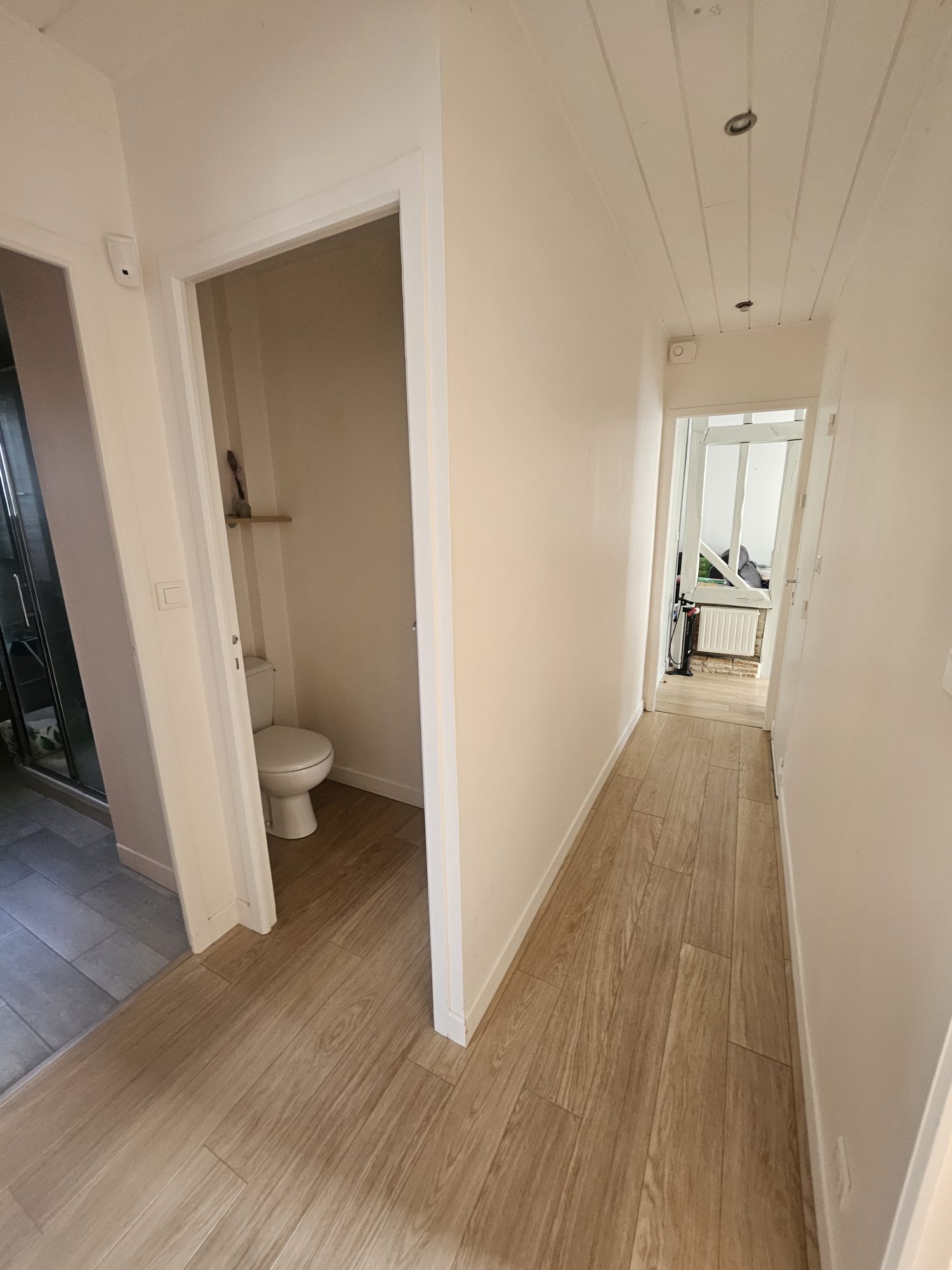 Un dégagement mène au coin nuit, offrant trois chambres dont une avec placard, salle de douche et WC séparé.