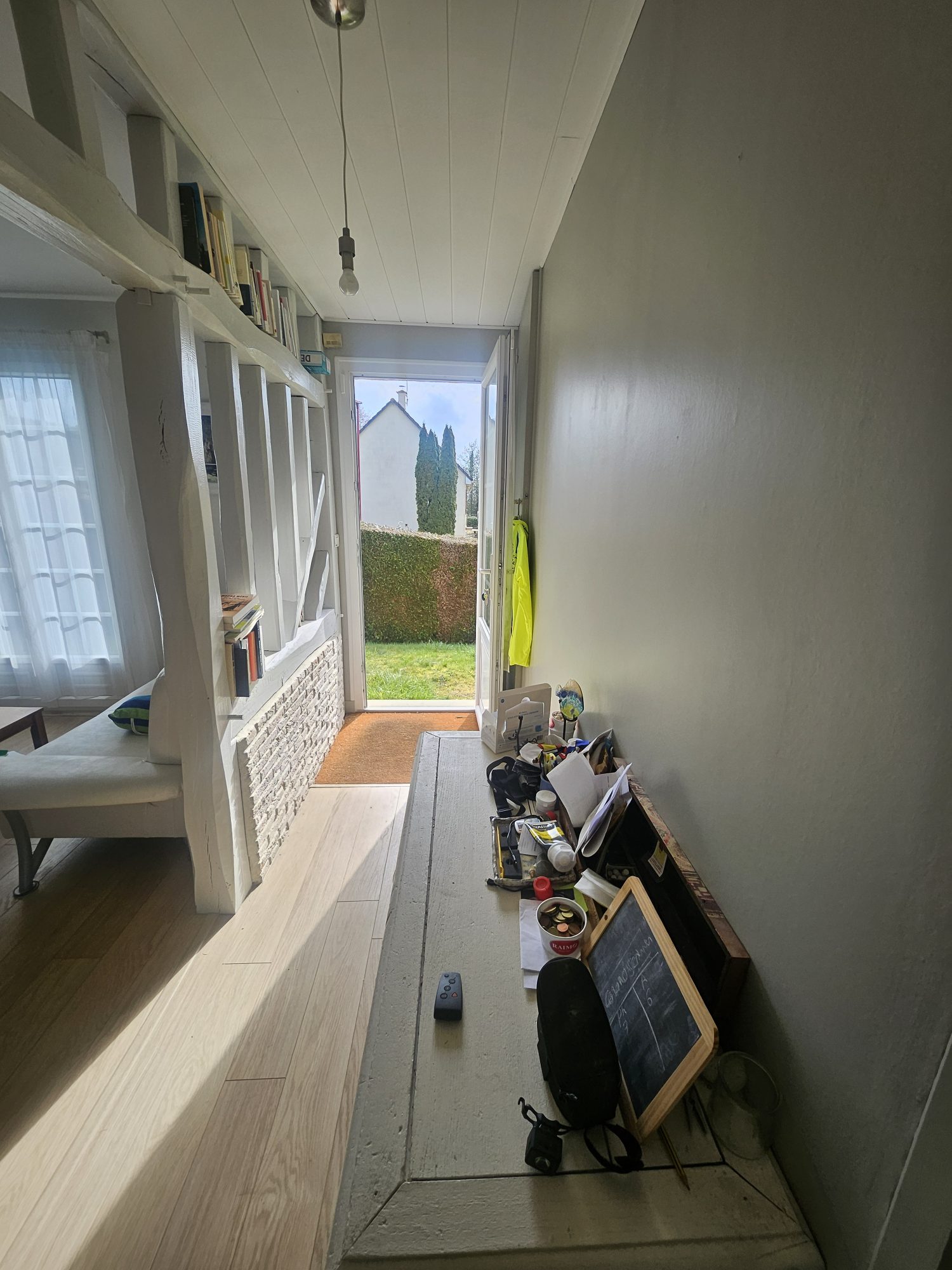 D'une entrée avec placard desservant le salon-séjour avec son accès terrasse, ouvert sur la cuisine aménagée-équipée.