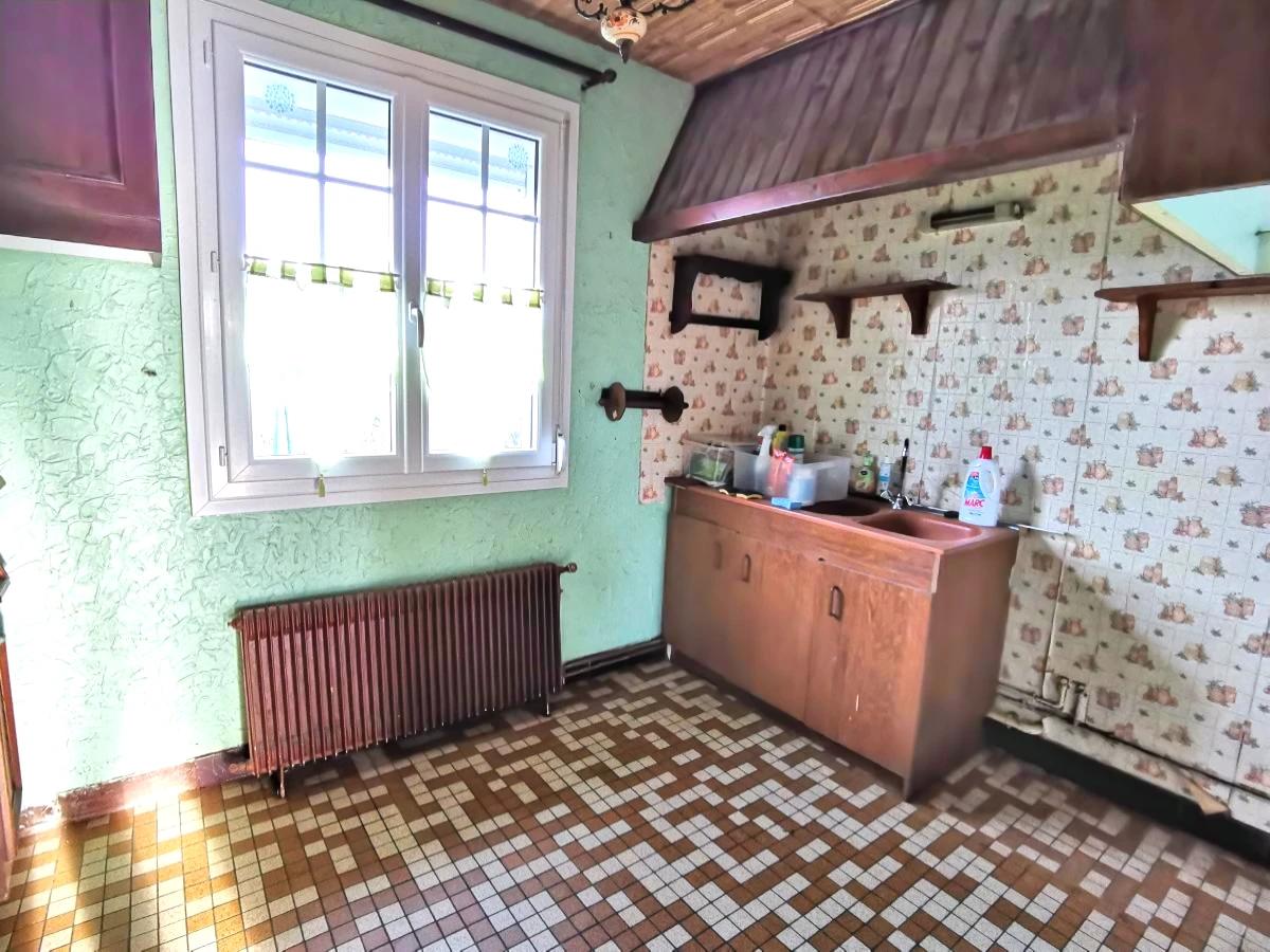 - Entrée avec placard, cuisine, séjour-salle à manger avec cheminée foyer ouvert, couloir desservant WC, salle de bains, trois chambres dont une avec placard.