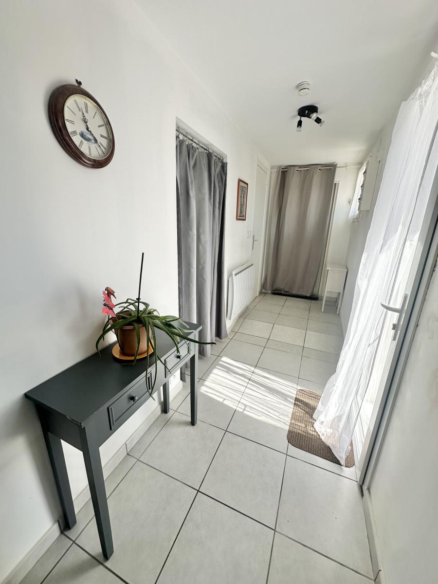 Elle se compose: d'une entrée avec dégagement, d'un séjour avec une kitchenette, 3 chambres dont une avec wc, lavabo et bidet, la seconde avec une arrivée d'eau pour installer une douche et la dernière possède déjà un grand dressing, salle d'eau, wc et un cellier.
