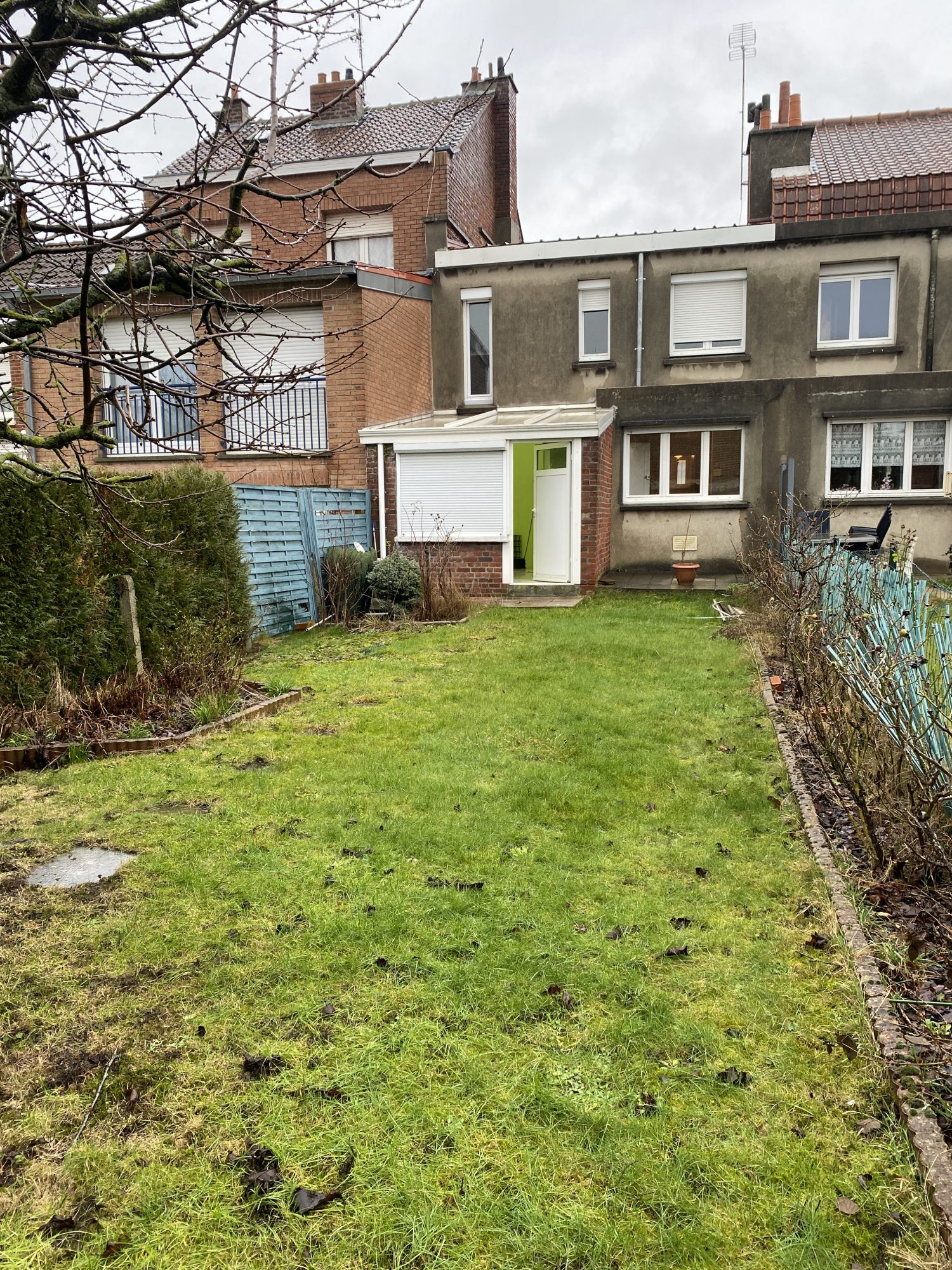 Maison 1960 atypique à toit plat, proximité cité jardins, comprenant un salon de 17m² carrelé, une cuisine équipée de 12m², une salle de bains de 6m² et une véranda de 12m² donnant sur un jardin exposé sud de 100m², puis à l'étage: 3 chambres de 8- 11 et 8m² plus un espace bureau, une cave de 35m², CC Gaz 2 ans