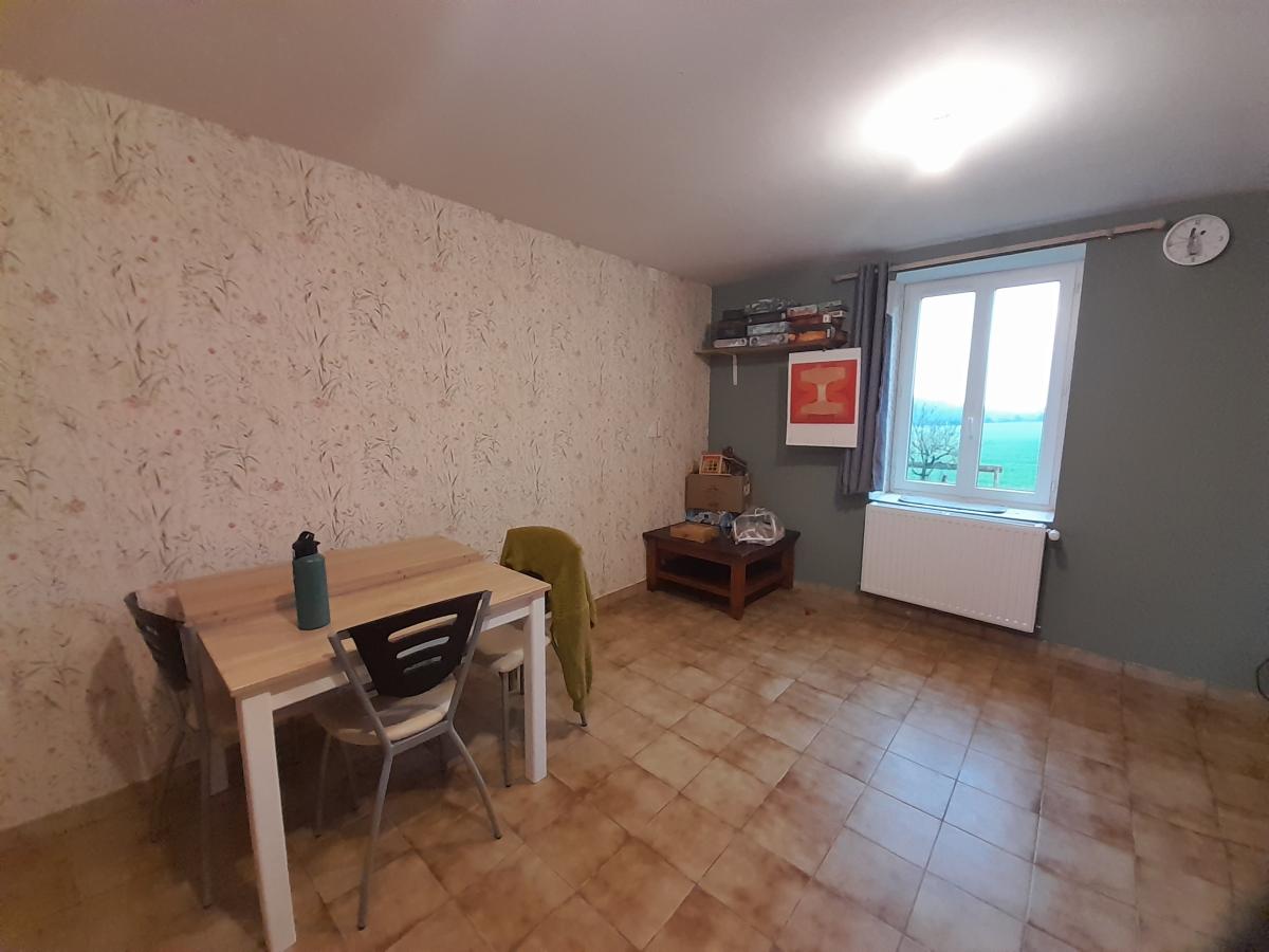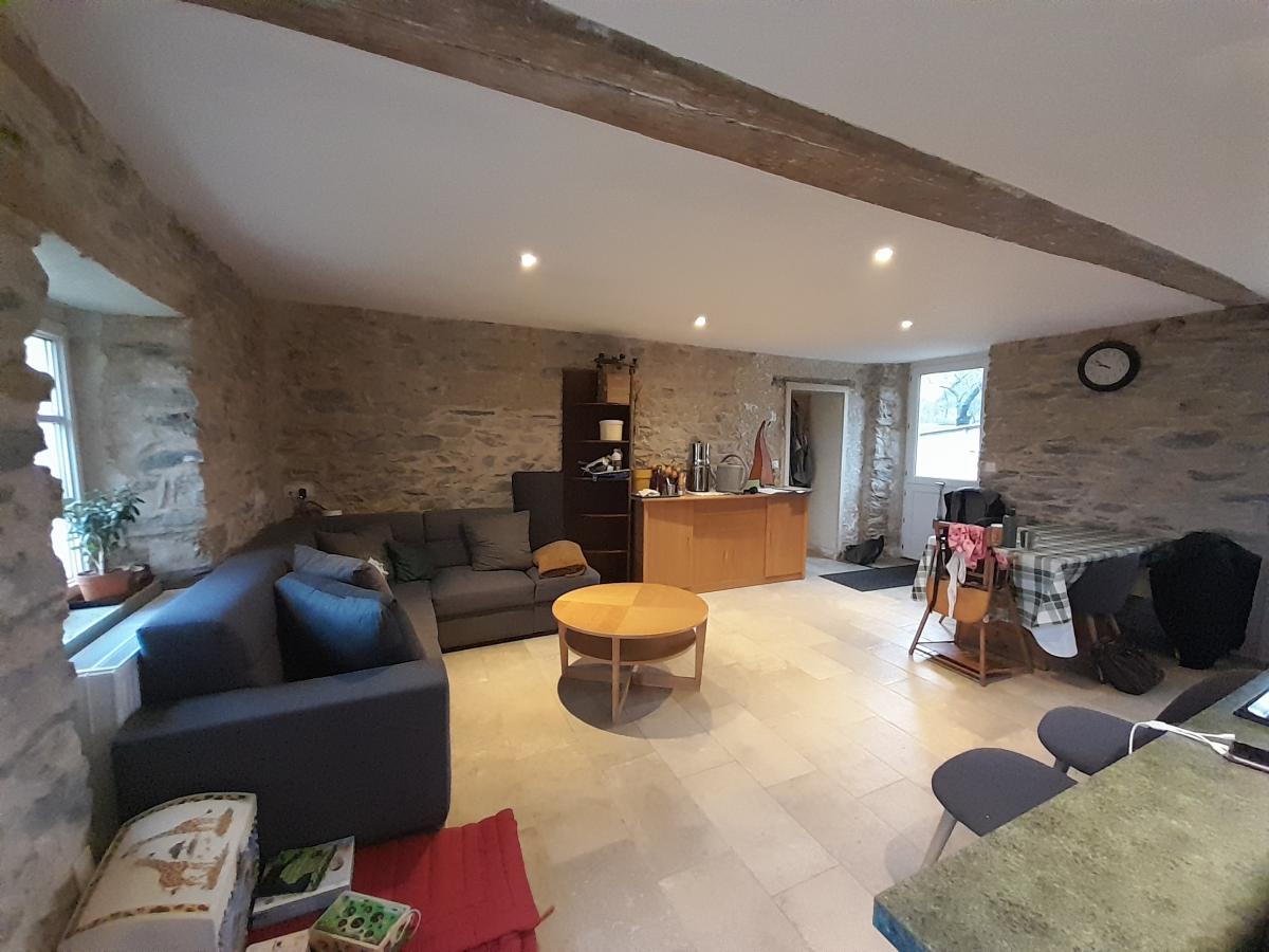 Un hall d'entrée, un salon, une cuisine aménagée ouverte sur un espace salle à manger, deux chambres en enfilade, une salle d'eau, toilettes sèches avec lave-mains.