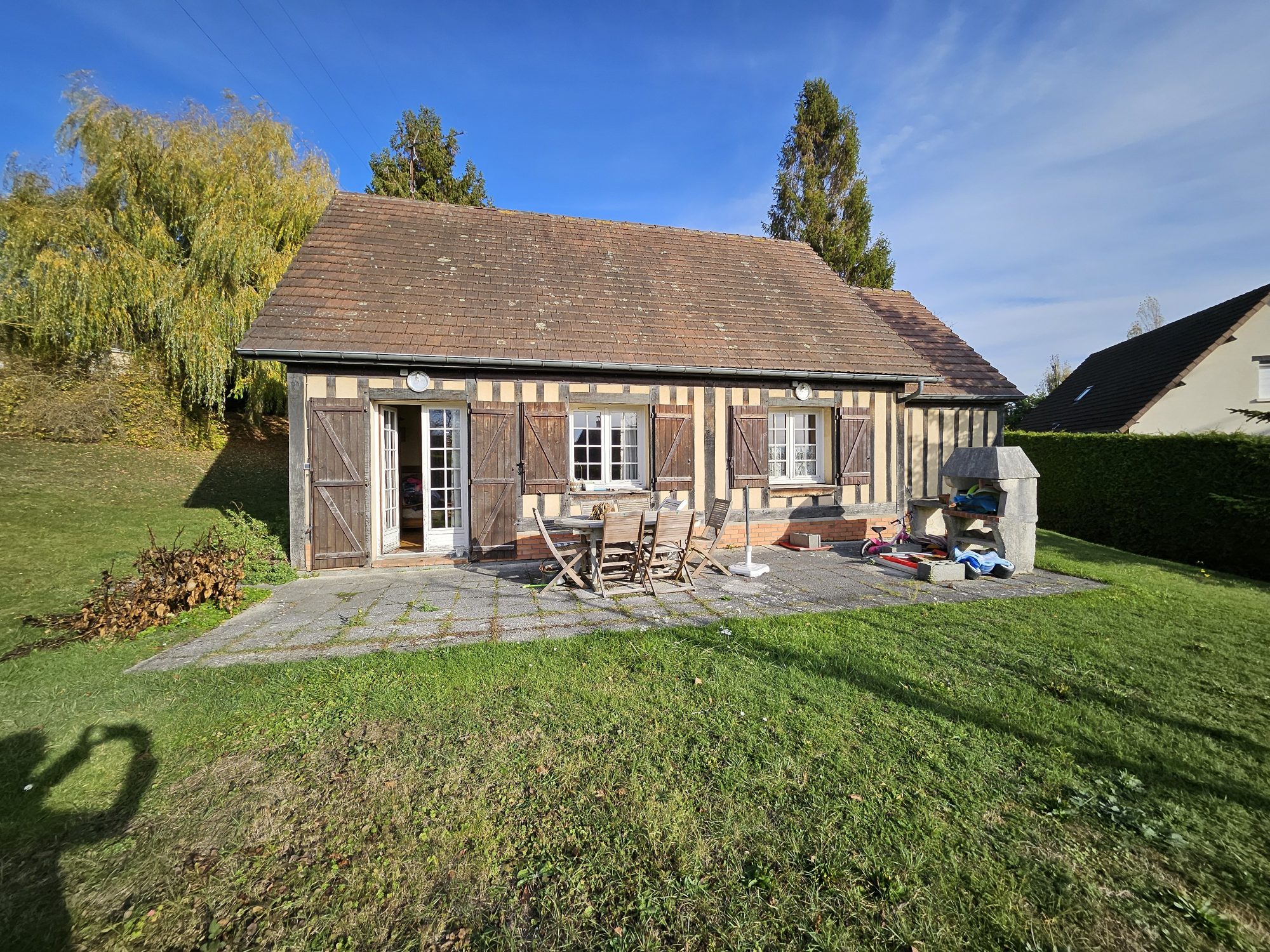 Au rez-de-chaussée : un séjour avec insert, cuisine, une chambre avec salle de bains et un WC séparés.