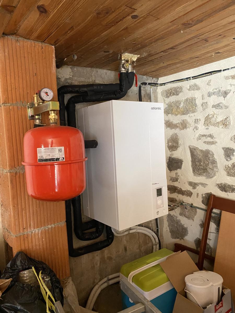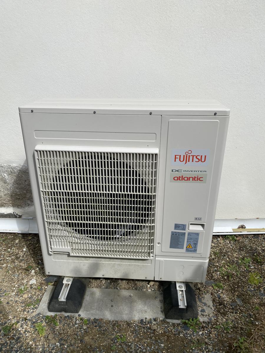 Chauffage par aérothermie (pompe à chaleur), double vitrage PVC au rez-de-chaussée et simple vitrage à l'étage.