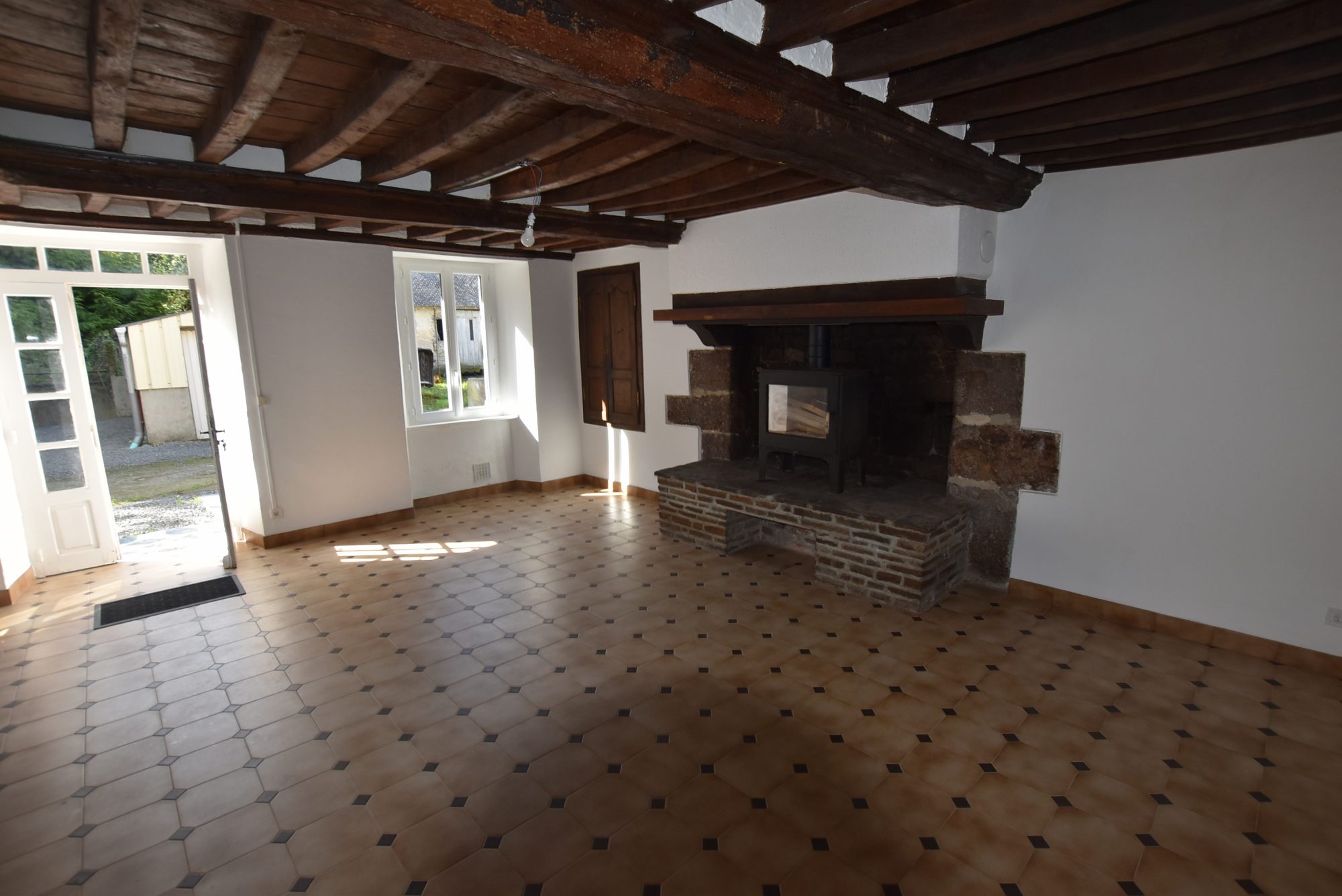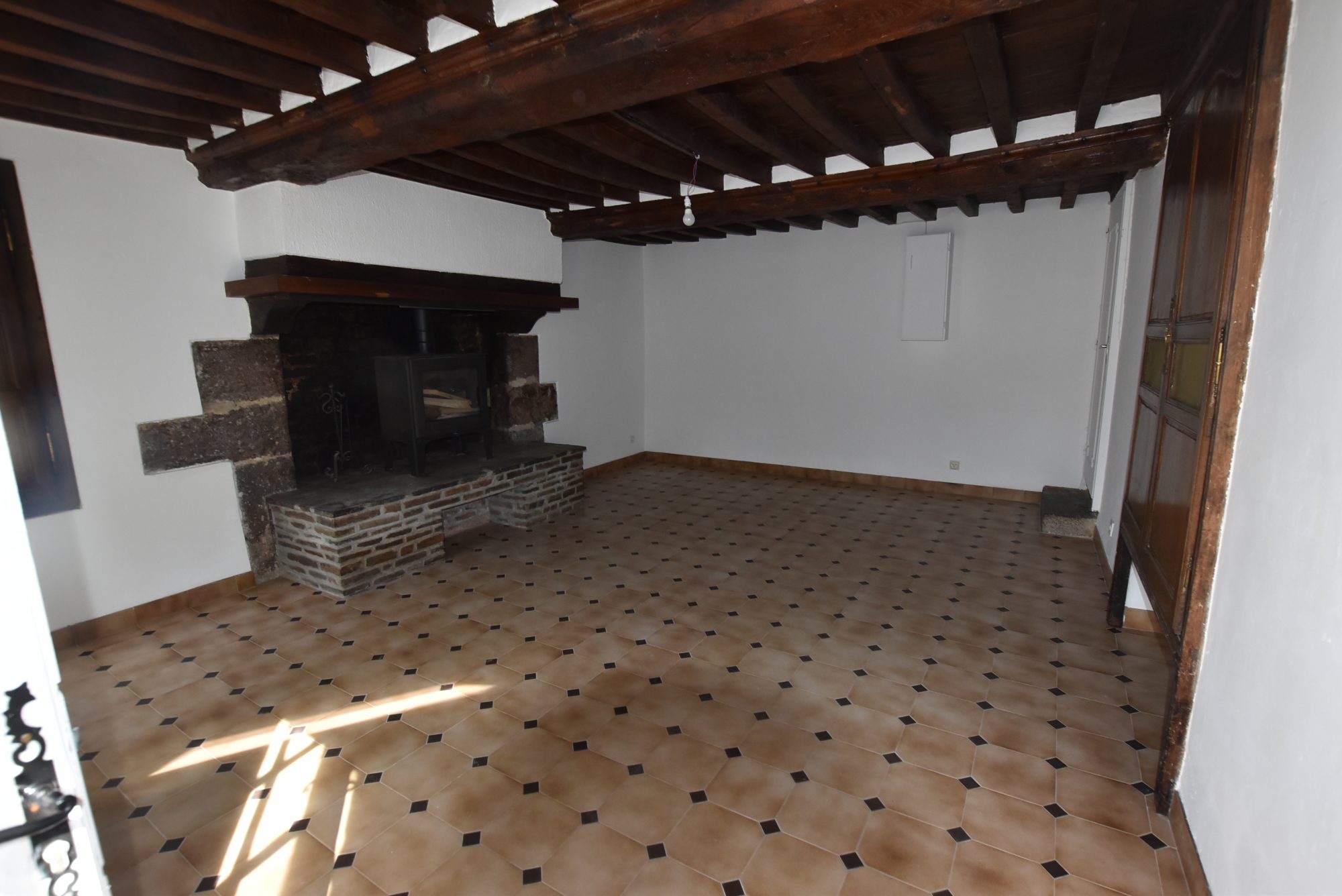 Au rez-de-chaussée : séjour avec poêle à bois, cuisine, salle d'eau et toilette séparé.