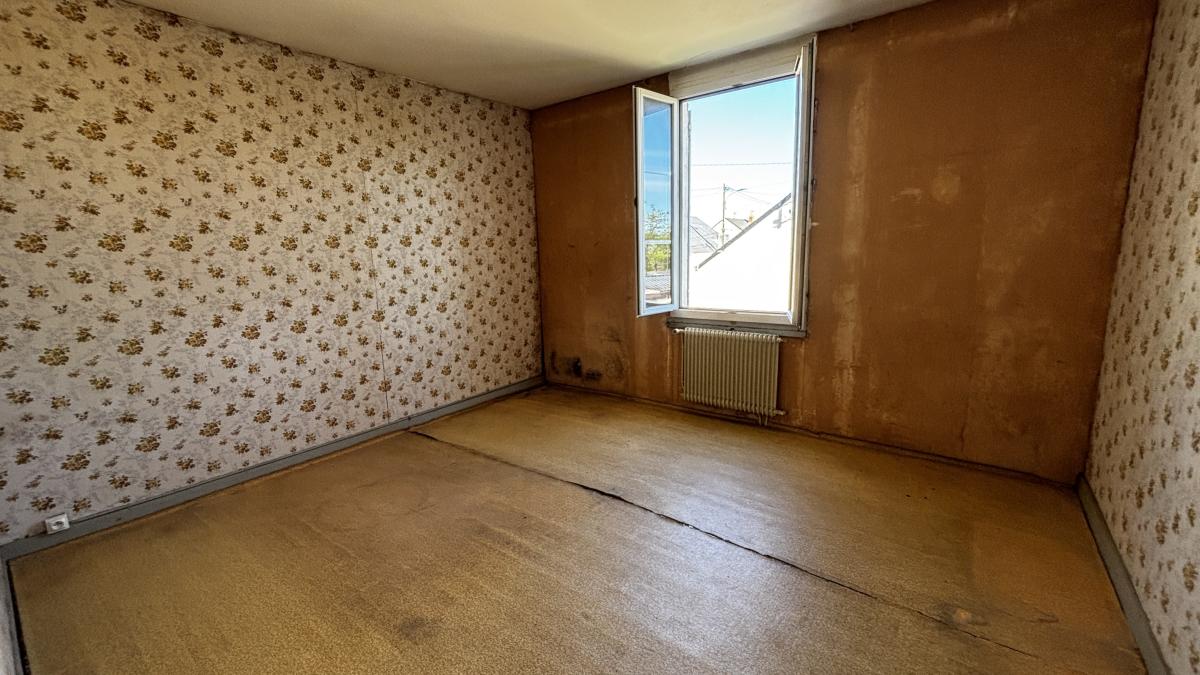 TRELAZE : proche du bourg de Trélazé Maison d'habitation comprenant au rez de chaussée cuisine, pièce de vie, dégagement, salon, salle d'eau, wc. ETAGE : Dégagement, bureau, 2 chambres. Garage une voiture. Terrain clos. Environnement calme.