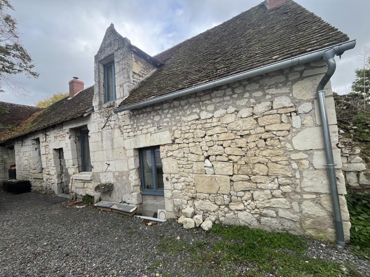 Maison d'habitation ancienne en grande partie rénovée comprenant entrée, salon avec cheminée insert, cuisine aménagée et équipée d'une hotte et de plaque (four à pain), dressing/buanderie.