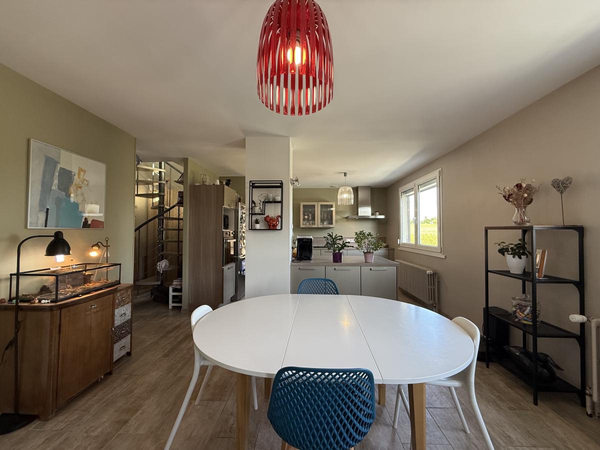 - Au Rez-de-chaussée : Entrée dans cuisine-salle à manger-salon, WC, dégagement, salle de bains, 2 chambres,