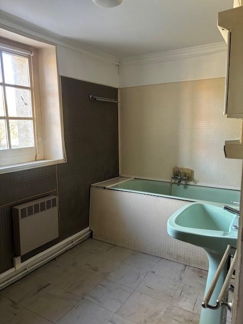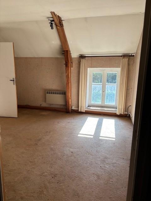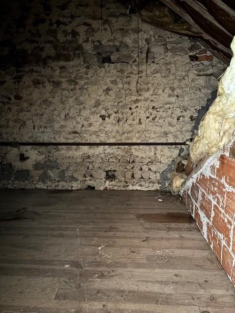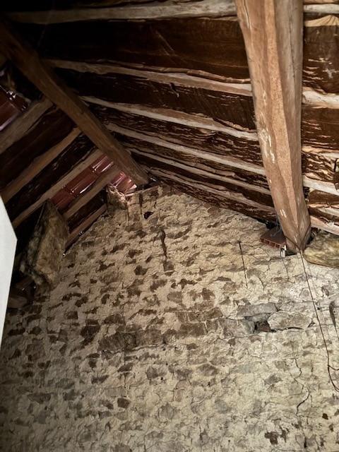 - Un étage divisé en : dégagement, deux chambres, grenier