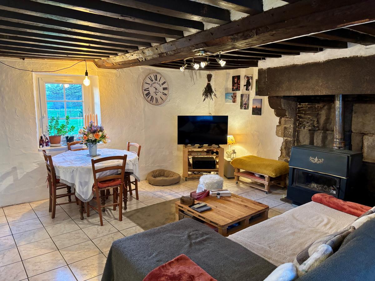- Au rez-de-chaussée : séjour avec poêle à bois, cuisine aménagée et équipée et cave